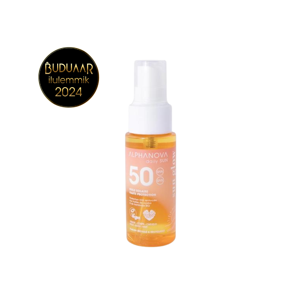 New beauty innovation from Alphanova! Spray tanning oil that offers twice the protection against UVA rays as required by European standards. Water-resistant!