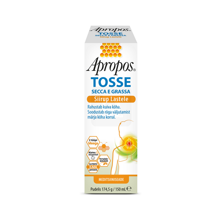 Suitable for both dry and wet coughs, soothes cough, relieves irritation, and promotes the fluidity of bronchial secretions, facilitating phlegm expulsion. Additionally, the honey and fruity taste make Apropos Cough syrup pleasant, especially for children. Suitable for children over 1 year old.