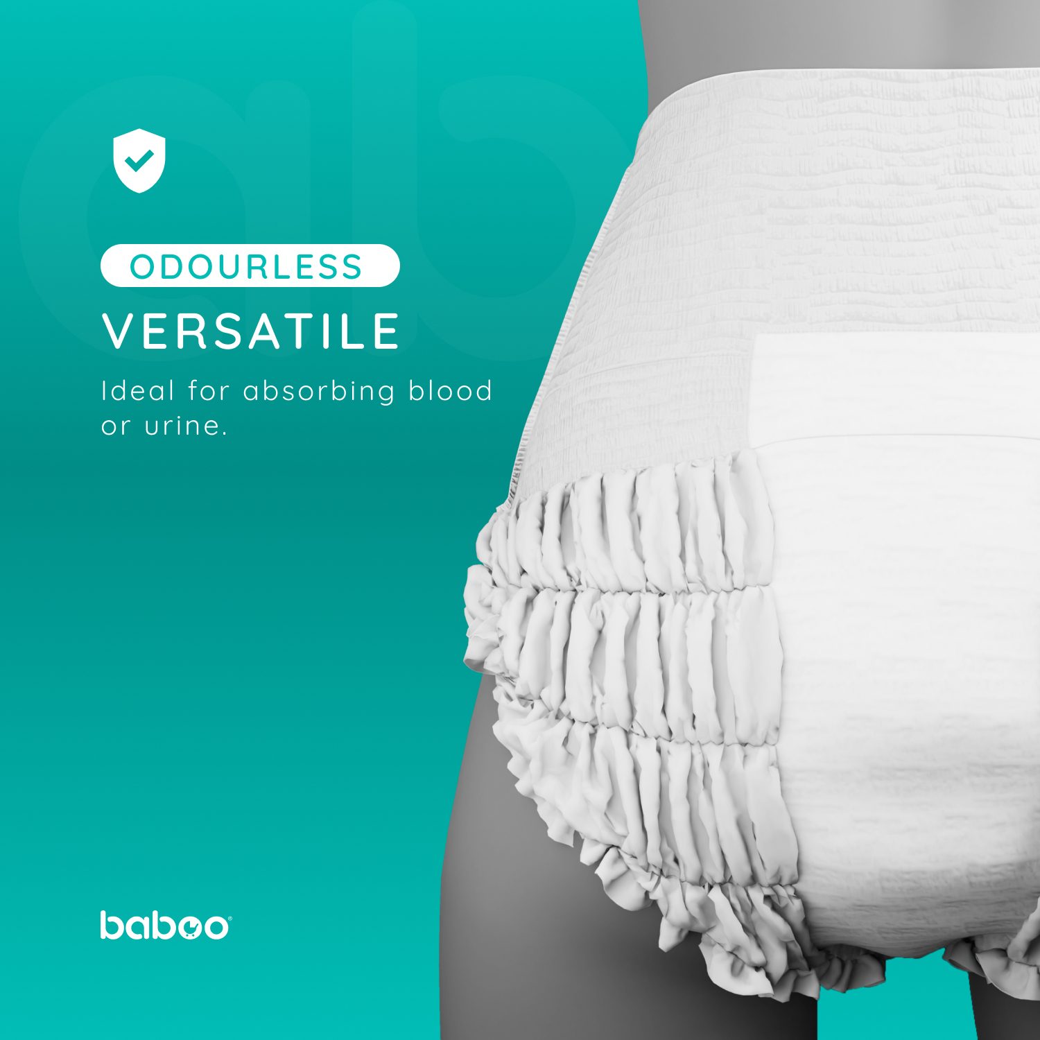 Baboo® disposable absorbent underwear provides comfort and maximum leak protection during postpartum recovery or heavy menstruation.