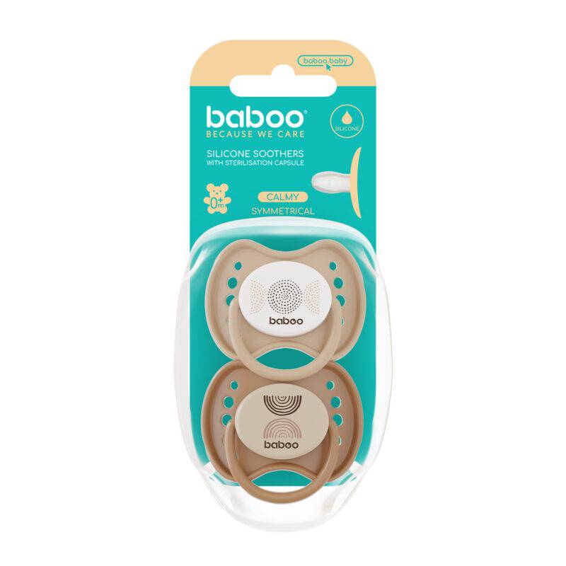 • 2 × BABOO® Calmy symmetrical silicone pacifiers
