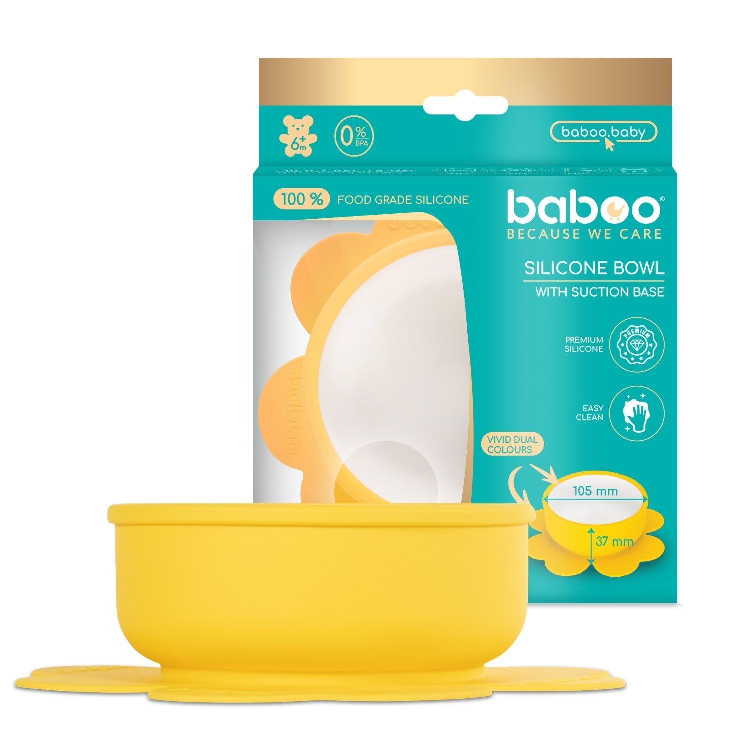 The bowl is made of high-quality and durable silicone that is safe for the child and completely BPA-free. The material is soft, yet strong enough for daily use. The two-color design is visually appealing to the child and fits nicely into any kitchen. The high edges help keep food in the bowl, making it easier for beginner eaters to scoop with a spoon.