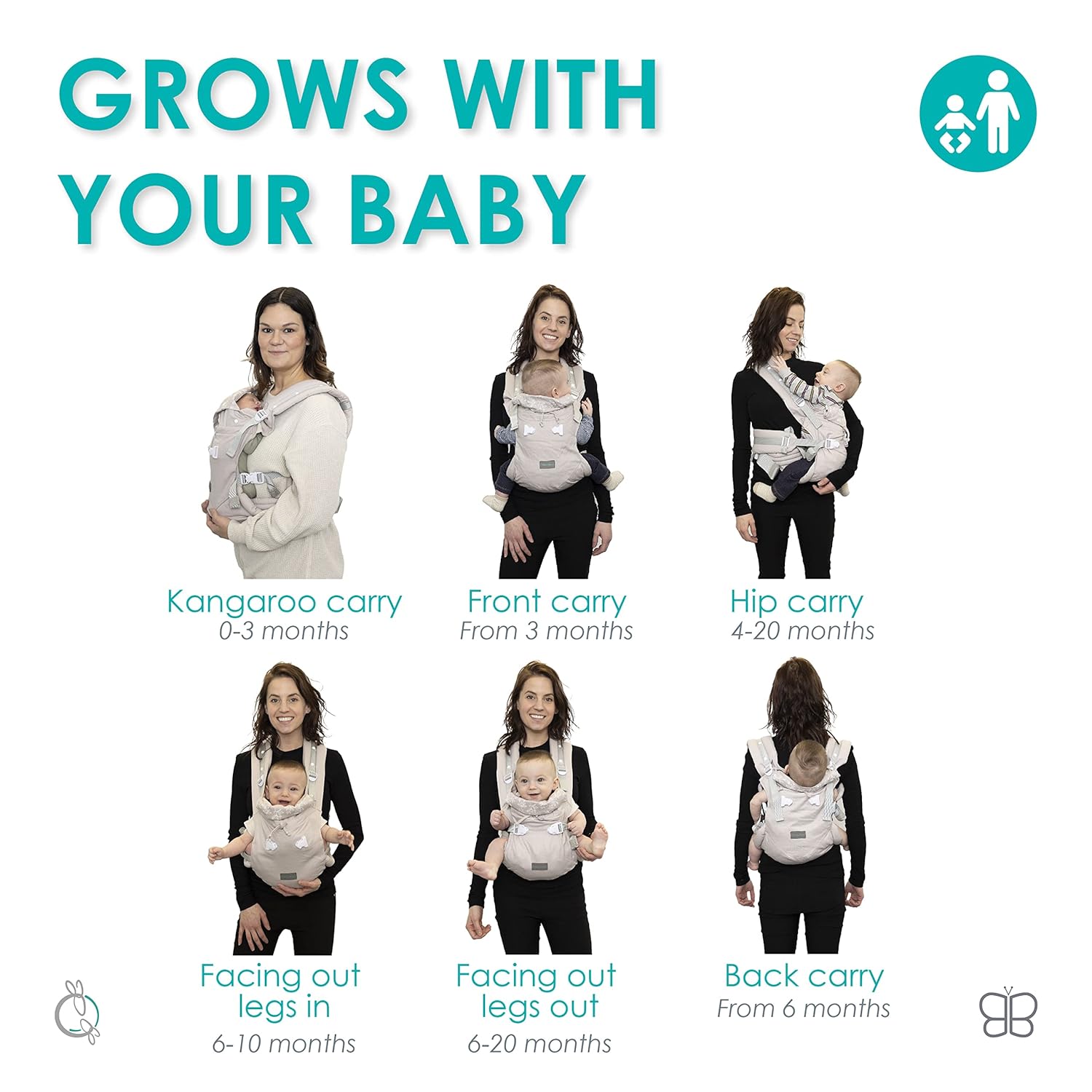 Designed with six carrying positions by age, wakefulness level or activity. From a baby backpack to front-carrying, you can easily switch your kids to be face-in or face-out as needed.