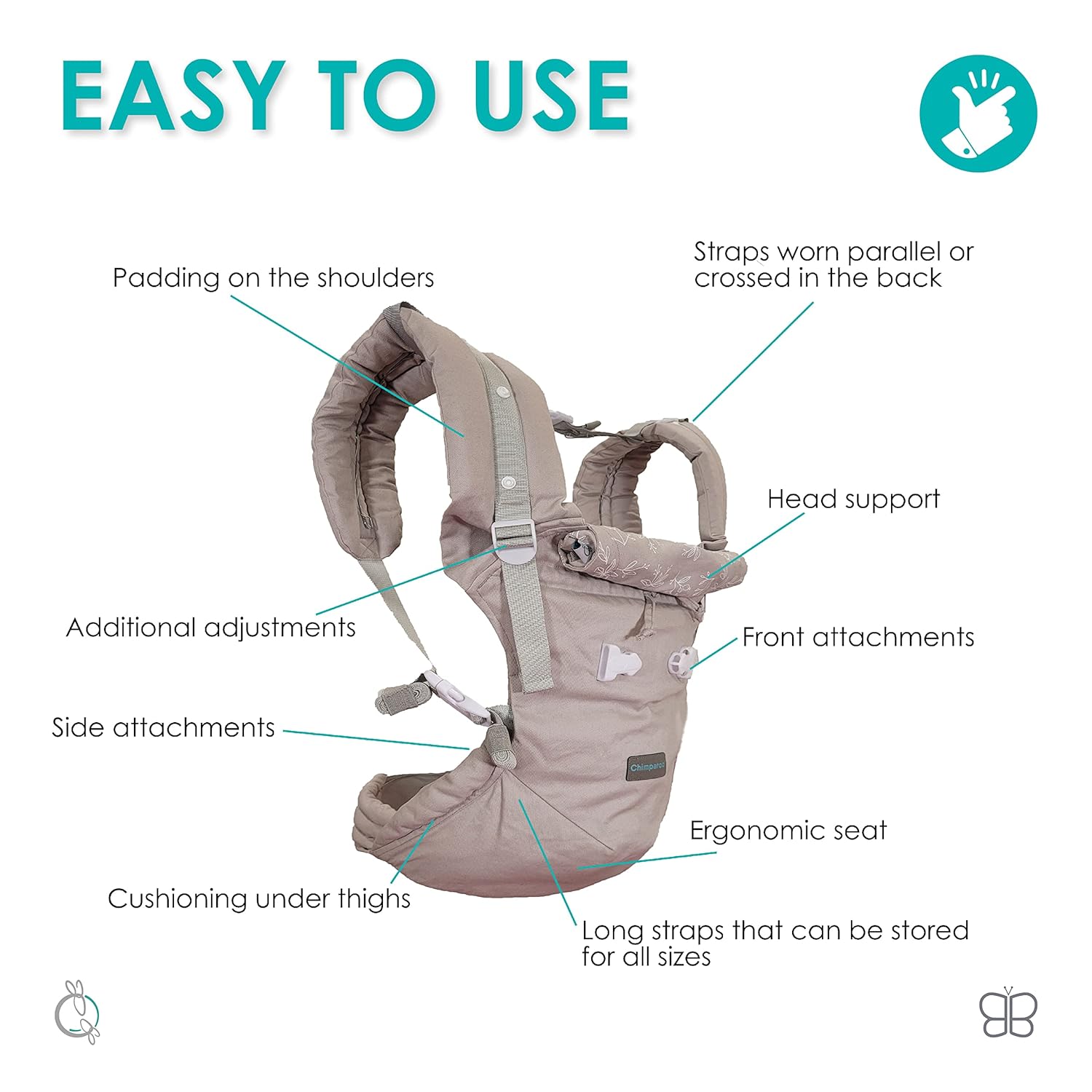 The bag’s simple and innovative adjustment system is designed for all baby body sizes. Every baby needs it; each baby strap can be adjusted to support from newborn to toddler (8-12 lbs). Intended for indoor or outdoor use.