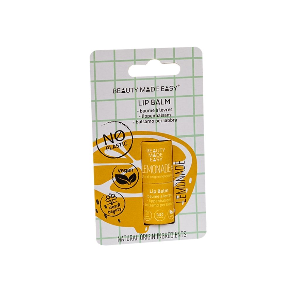BEAUTY MADE EASY paper tube lip balms accompany you during the summer months and provide your lips with moisture and a soft feeling. The lip balm contains shea butter, coconut oil, and marula oil, which soften chapped and brittle skin. With a delicate and heavenly fragrance composition.