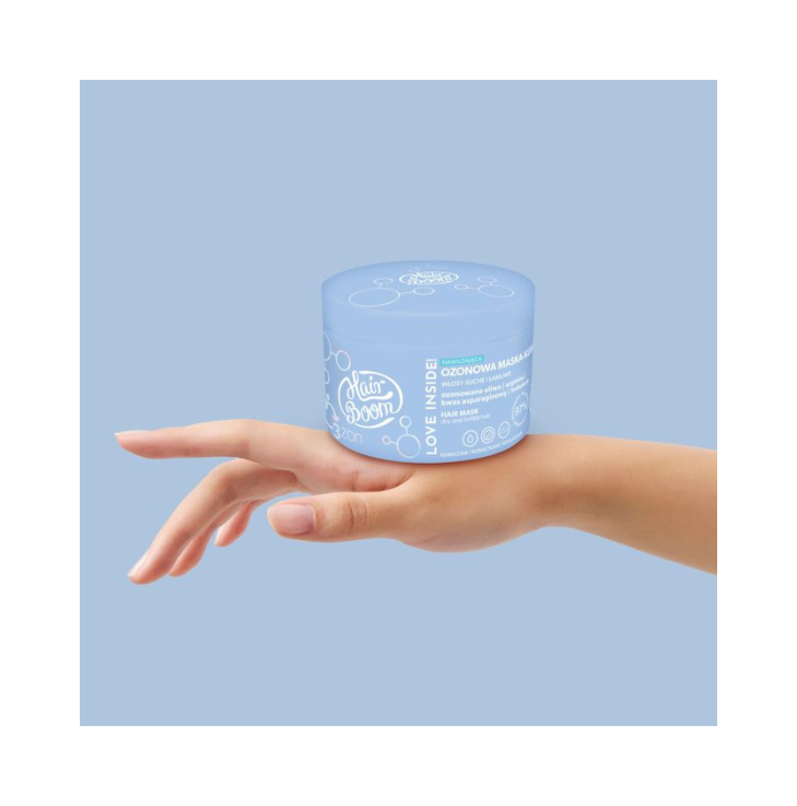 The HairBoom O3ZON care mask is designed especially for dry and brittle hair that needs deep hydration, smoothness, shine, and strengthening. The formula contains ozonated olive oil, which releases revitalizing and oxygenating properties during use, helping restore hair’s vitality and protective barrier.