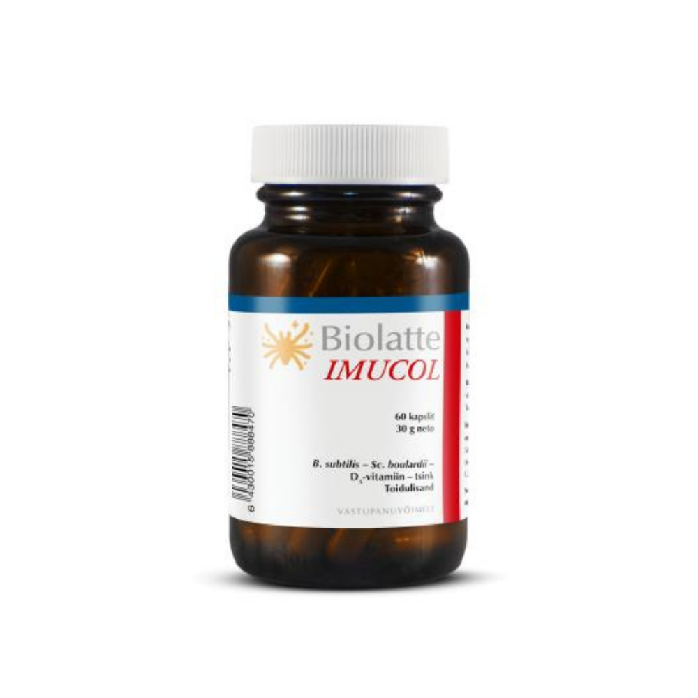 Biolatte IMUCOL is specifically developed to support the immune system. The product contains carefully selected pure ingredients that are essential for supporting the body’s resilience. Bacillus subtilis – clinical studies show that Bacillus subtilis has a unique ability to effectively stimulate the body’s natural resistance. Saccharomyces boulardii is a well-studied probiotic yeast that has a significant impact on restoring mucous membranes. Healthy mucous membranes help maintain the balance of gut microbes. Vitamin D3 and zinc contribute to the normal functioning of the immune system. Jerusalem artichoke is an excellent source of fiber. Fibers support the balance of gut microbes.