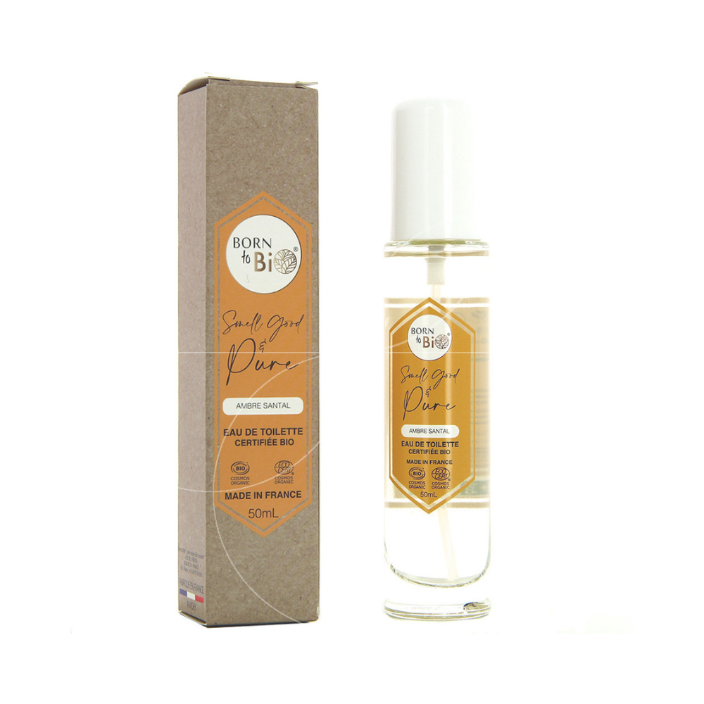 Born To Bio Amber Sandalwood toilet water is a true fragrance journey. Its woody, vanilla, and fruity notes transport you to a natural atmosphere, like a tropical forest with a sweet vanilla scent. In a 50 ml bottle that’s easy to carry, this toilet water is the ideal companion for your travels or daily life. Our Amber Sandalwood toilet water is made in France according to organic certification standards, making it a sustainable and responsible product that respects the planet.