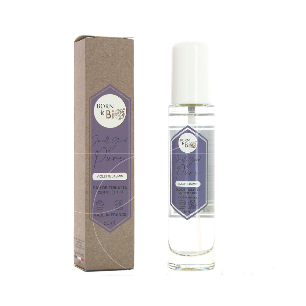 Our Violette Jasmine eau de toilette is a true delight for the senses. Notes of bergamot provide a bright and sharp touch, while violet leaf adds a green and slightly powdery dimension. Jasmine reveals an elegant and feminine floral heart. Finally, vanilla adds sweetness and comfort to this composition. This organic eau de toilette is more than just a perfume, it also offers benefits for your well-being. The floral notes have soothing and relaxing properties, making it perfect for everyday use.