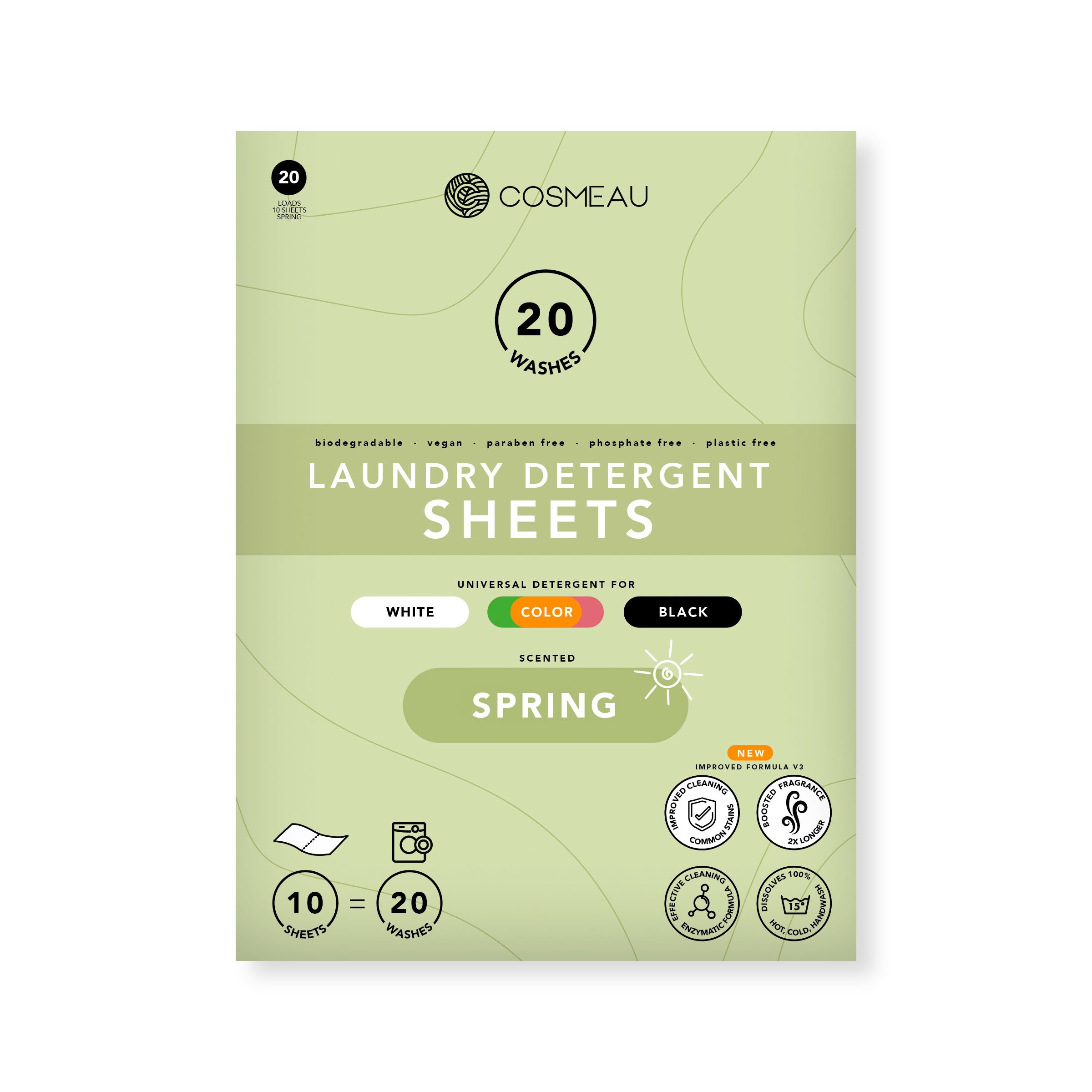 Laundry strips are a paper-form laundry detergent. An affordable and eco-friendly way to wash your clothes. Plastic-free, vegan, and biodegradable. No more lifting heavy bottles or cluttering your shelves with large boxes. Our highly concentrated eco formula is gentle, dissolves in both hot and cold water, and ensures clean and fresh laundry.