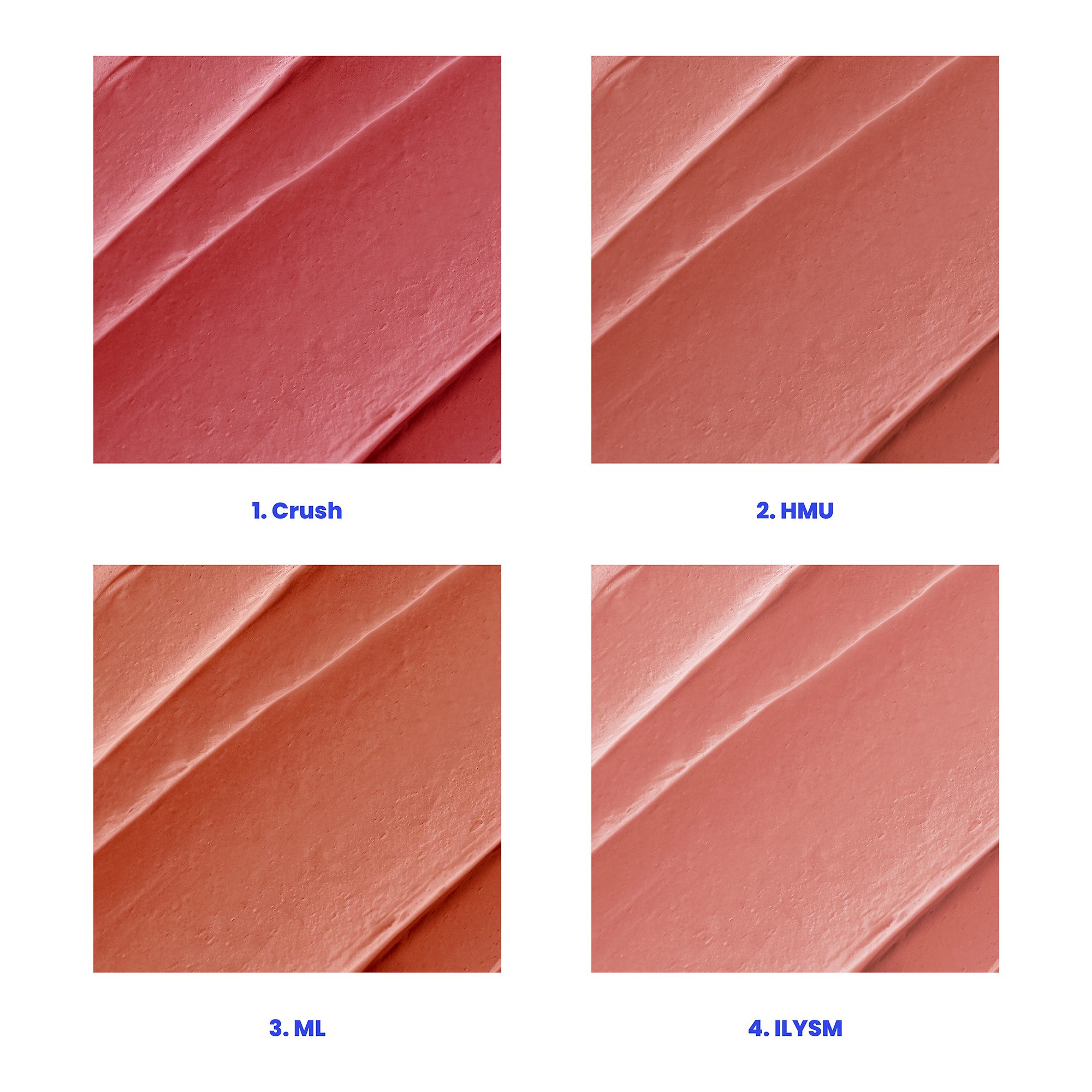The collection features 4 creamy-textured blushes designed to blend seamlessly into the skin for precise application.
