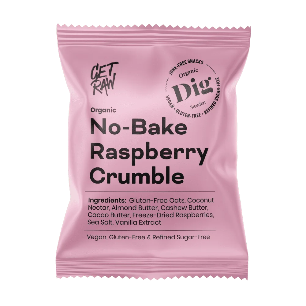 Gluten-free oats, coconut nectar, almond butter, cashew butter, cocoa butter, freeze-dried raspberries 4%, sea salt, vanilla extract. *Organic.