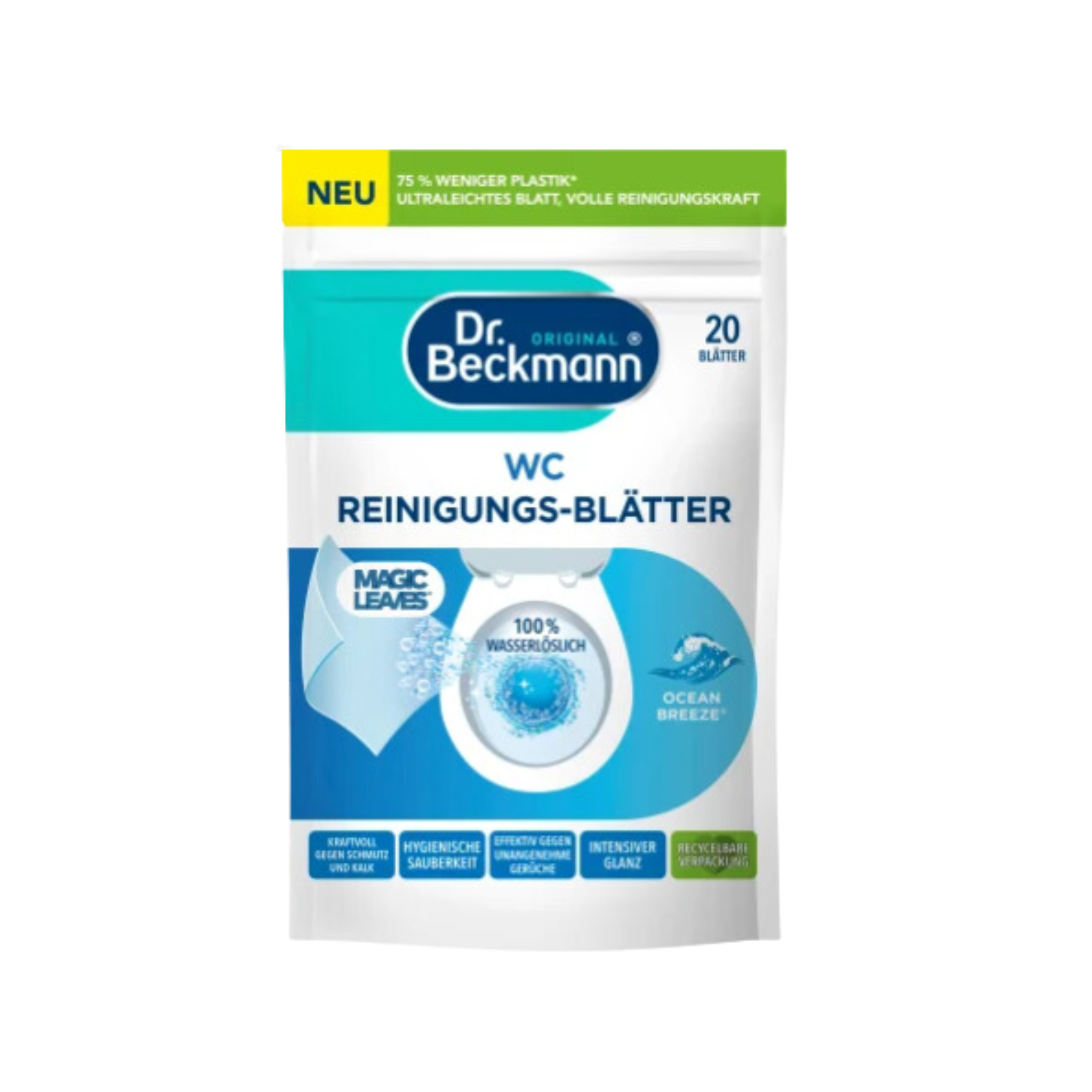 With Dr. Beckmann Ocean Breeze toilet cleaning wipes, you not only save plastic, but also make your toilet sparkling white. The sheets are 100% water-soluble and have an especially powerful effect against dirt and limescale.