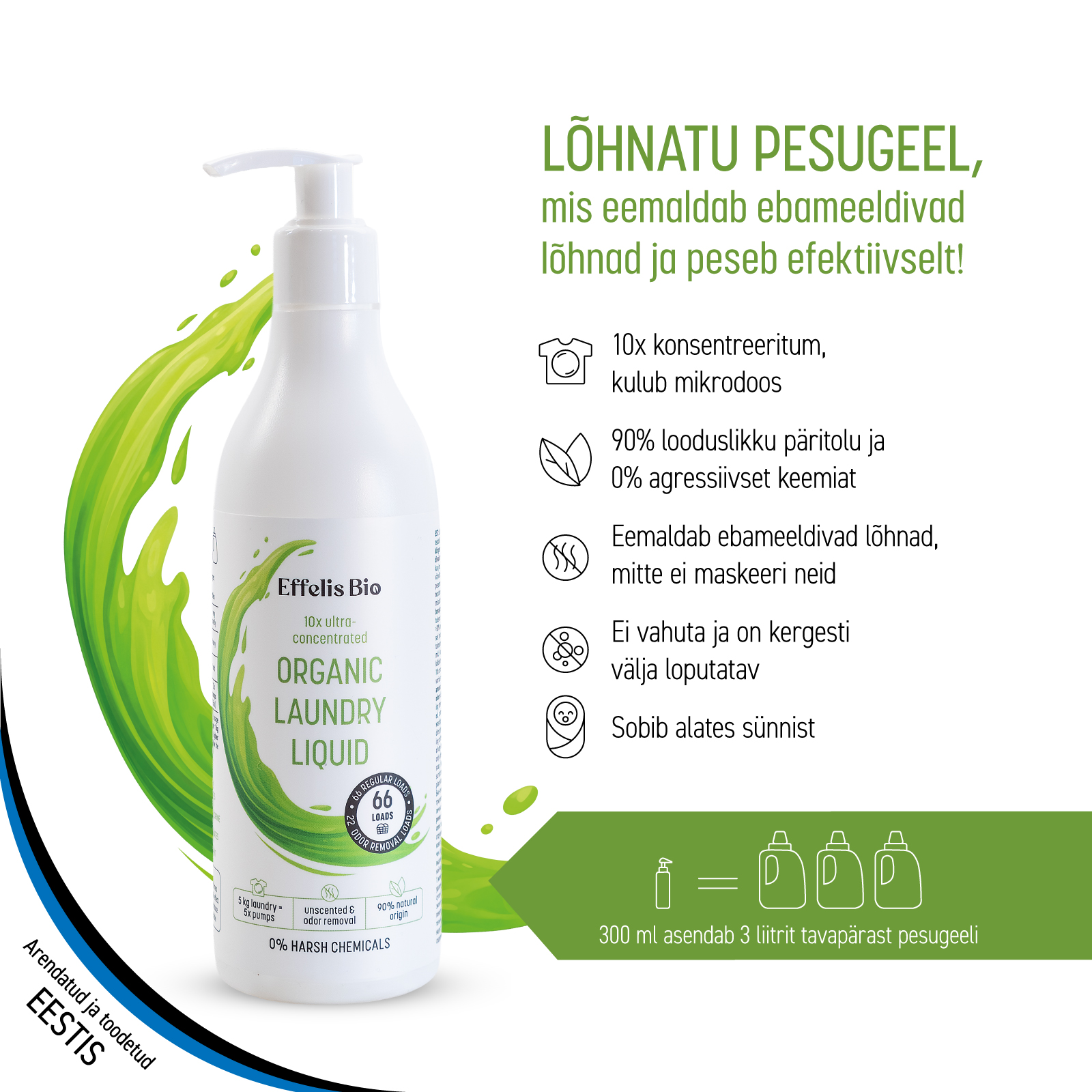 - 300 ml = 66 washes = equivalent to 3 L of regular washing gel