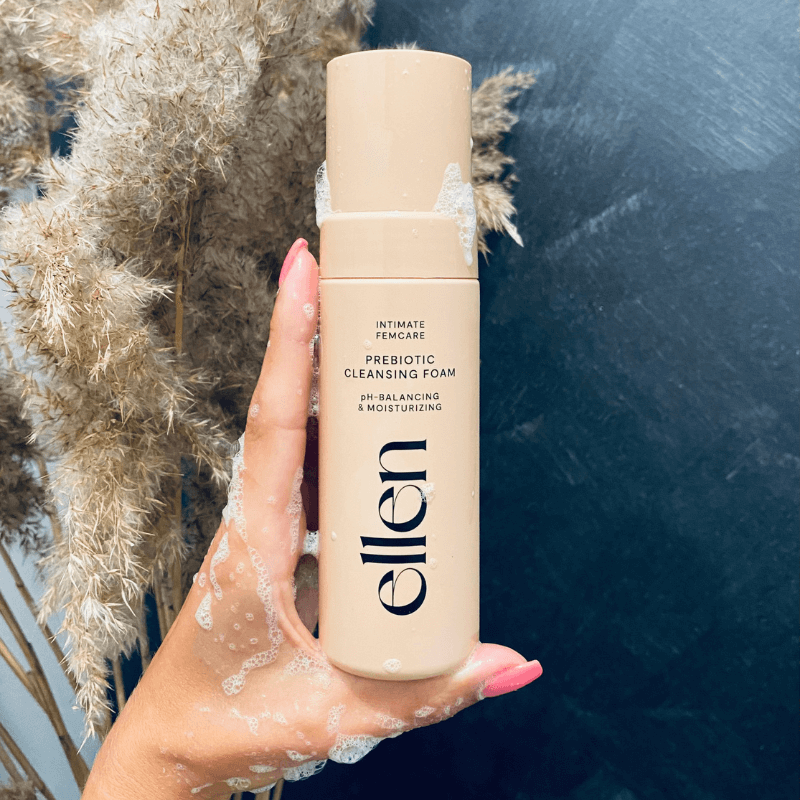 The pH value of ellen® Prebiotic Cleansing Foam is gentle on the external intimate area. It contains moisturizing lactic acid to help maintain the natural pH of the intimate area and prebiotics that enhance good skin bacteria, reduce irritation, and strengthen the skin’s protective barrier.
