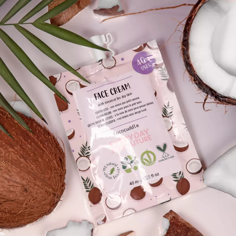 The products are formulated with simple ingredients, and at least 98% of the ingredients are natural (except for hand cleansers). EDFTF products use 50% less plastic packaging compared to similar cosmetic products. All products are vegan.