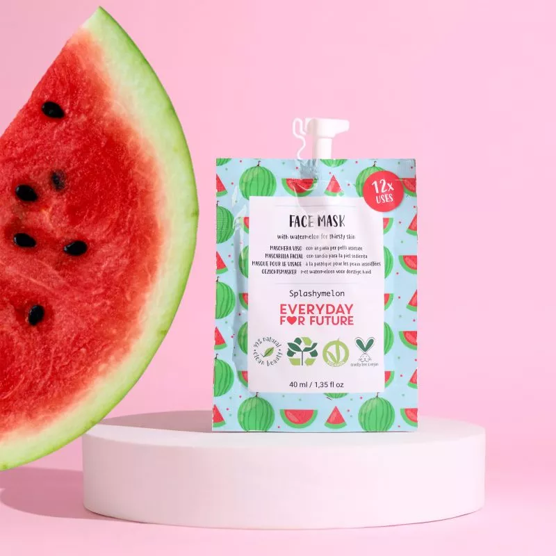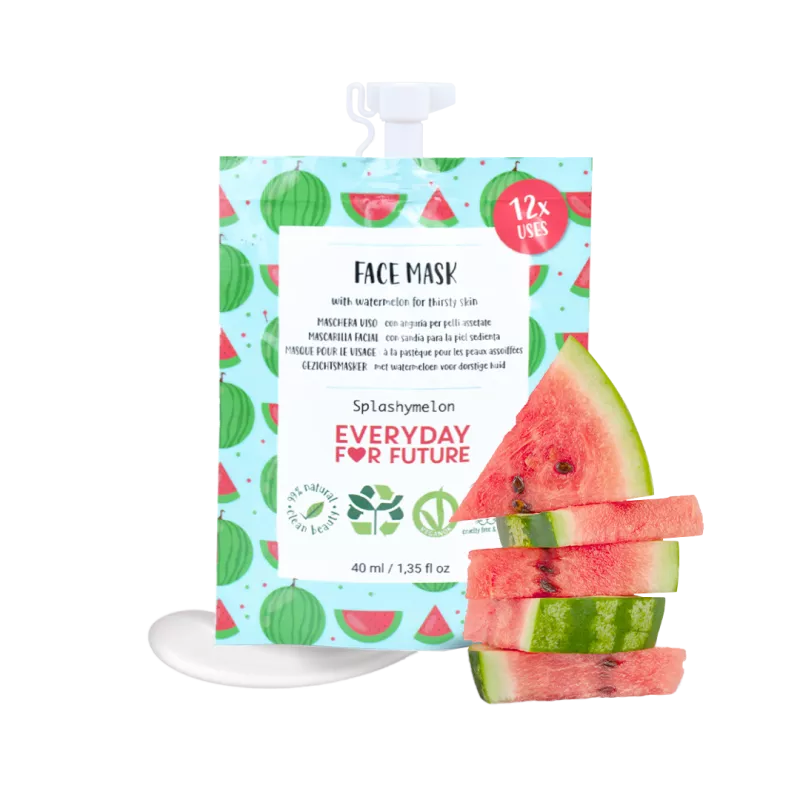 The moisturizing face mask is designed for intensive replenishment of dry and thirsty skin. Watermelon, originating from tropical Africa and already depicted in ancient Egyptian hieroglyphs, is known for its restorative and moisturizing properties. The mask provides the skin with a deep moisture boost, helps relieve the discomfort caused by dryness, and supports natural renewal. After use, the skin is smoother, softer, and visibly fresher. The gentle yet effective formula fits into daily skincare routines, offering a quick and pleasant pampering when the skin needs extra hydration.