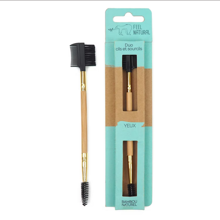 FEEL NATURAL eyebrow and eyelash brush is made from natural bamboo and ultra-soft synthetic bristles and does not contain animal-derived components.