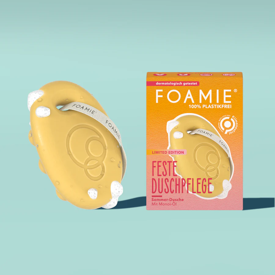 Foamie Shower Body Bar Beach please solid soap for light and effective body cleansing, nourishing and revitalizing. It is a solid foam bath, without soap. Its vegan formula combines coconut and monoi oils for rich skincare and a wonderful long-lasting summer scent.