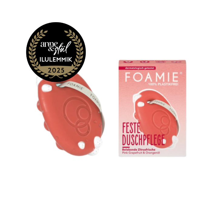 Foamie Solid Shower Care Grapefruit nourishes the body intensely. For a moisturizing shower with nourishing pink grapefruit extract and orange oil! Three-in-one solid shower care: massages, cleanses, and nourishes.