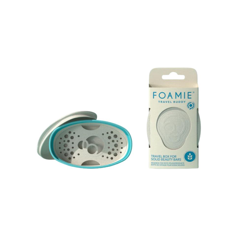 The reusable Foamie Travel Buddy case for solid shampoo and conditioner declares war on packaging waste while traveling! Made of 80% wheat fiber and 20% recycled polypropylene, it features a silicone cap for waterproof storage. The double-bottomed Travel Buddy prevents water accumulation and ensures optimal storage.