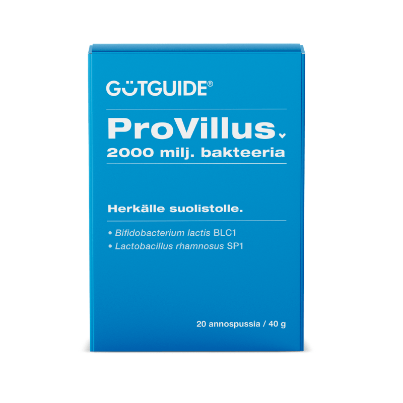 GutGuide® ProVillus lactic acid bacteria product is suitable for sensitive and irritated intestines and all age groups, with no age limit. The product is a combination of two selected bacterial strains. Lactobacillus rhamnosus SP1 + Bifidobacterium lactis BLC. Based on GutGuide’s EU patent FI 127483 B.