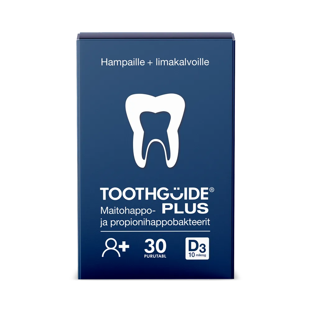 ToothGuide® PLUS is a chewable tablet intended for daily oral care, which contains a blend of three lactic acid bacterial strains – Streptococcus salivarius K12, Lactobacillus rhamnosus GG, and Propionibacterium shermanii S – and vitamin D3. The tablets support the balance of the oral microbiome, help prevent yeast overgrowth, promote saliva production, and support the normal functioning of both the teeth and immune system.