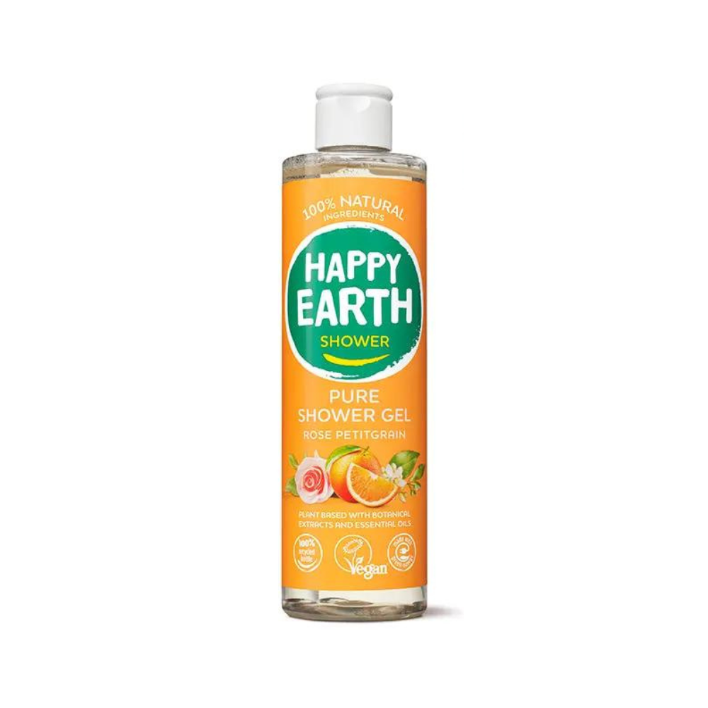 Happy Earth Pure Shower Gel Rose Petitgrain is a 100% natural, vegan shower gel made with ingredients that make your skin and the earth happy. All the ingredients in this shower gel are certified 100% natural and bear the Natrue and Vegan Society quality marks. It’s reassuring to know that it contains no polluting or unpleasant ingredients like SLS/SLES, parabens, colorants, or other nasty additives when you apply it to your skin and rinse it down the drain. All Happy Earth shower gels are free of microplastics and other chemicals. With this shower gel, you are taking good care of yourself and our planet!