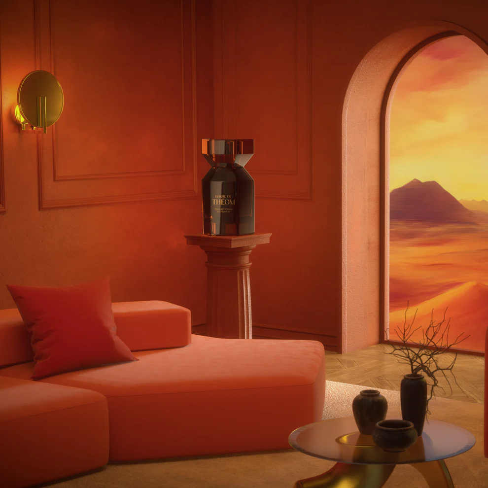 In the heart notes, aromatic geranium and elegant rose unfold, enhanced by the gentle sweetness of sugary notes – like a momentary warm touch that lingers in memory. In the base, the depth of amber wood, the embrace of velvety musk, and the creamy tonka bean and vanilla blend together, remaining on the skin like the quiet call of an evening desert.