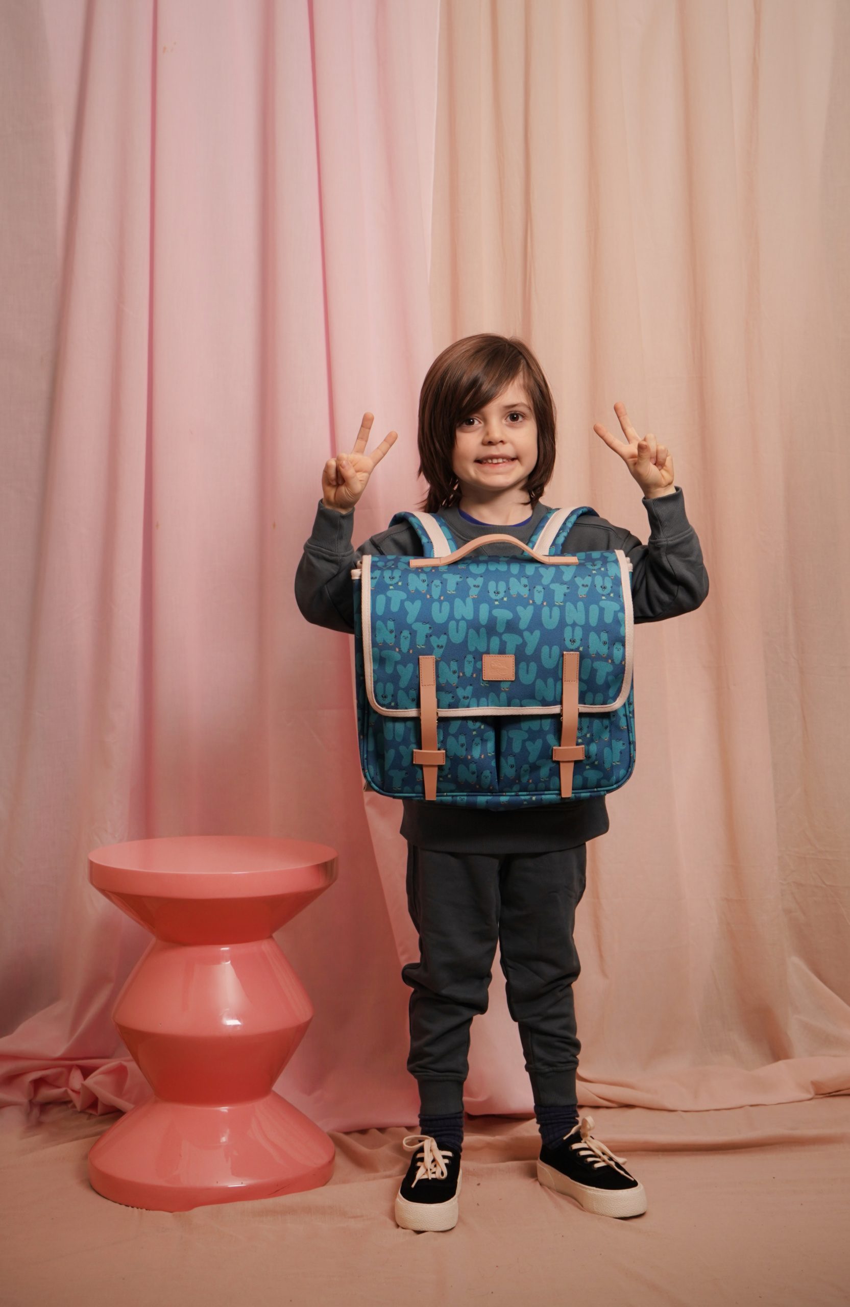 School bag designed for primary school students. Includes compartments for A4 formats and 24x32cm.