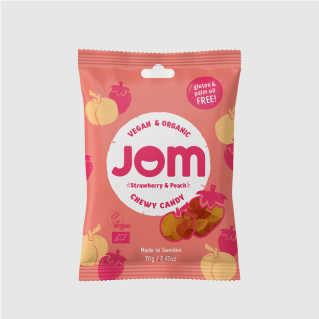 JOM Organic Gummies – Strawberry and Peach are one of the new three candy mixes from the Swedish organic candy maker. Now JOM has its own candy pack for every day, as there are currently seven products in total. If your favorite is peach, then that flavor is also available as a separate pack.