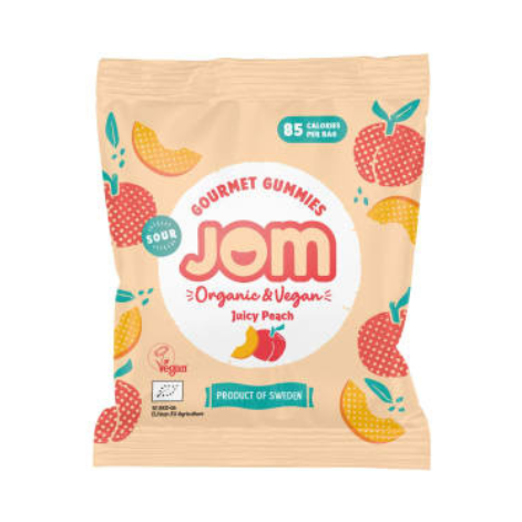 Say hello to JOM’s Sour Juicy Peach gummy candies and get ready to sweeten every bite! These treats, lovingly crafted in Sweden, are made in small batches using only organic and vegan-certified ingredients. Completely free from gluten, palm oil, and other allergens. These single-serve snack packs are perfect for on-the-go moments—practical, eco-conscious, and featuring recyclable packaging.