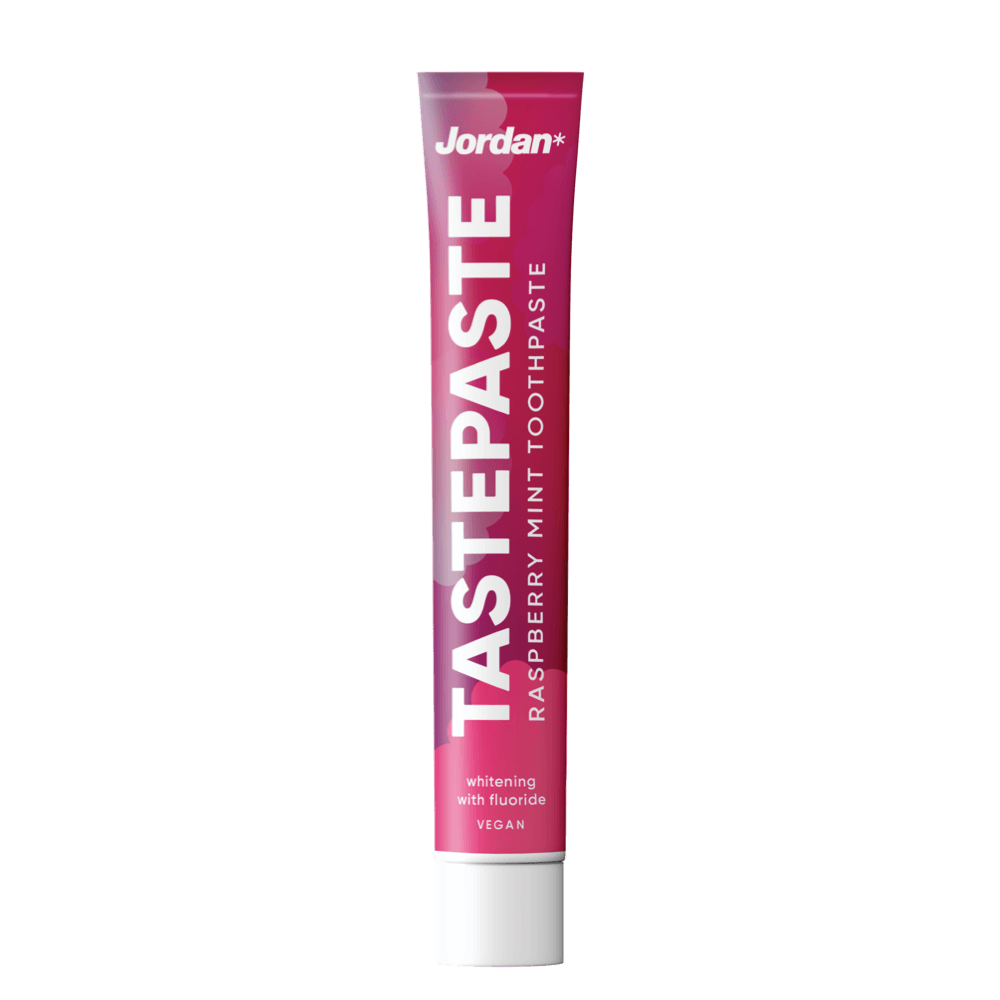 Jordan Tastepaste Raspberry Mint 50ml toothpaste – fill toothbrushing with exciting flavors while caring for your white smile.