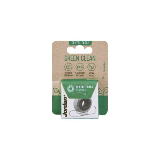 There are 30 m of dental floss packaged without plastic. The product is suitable for vegans.