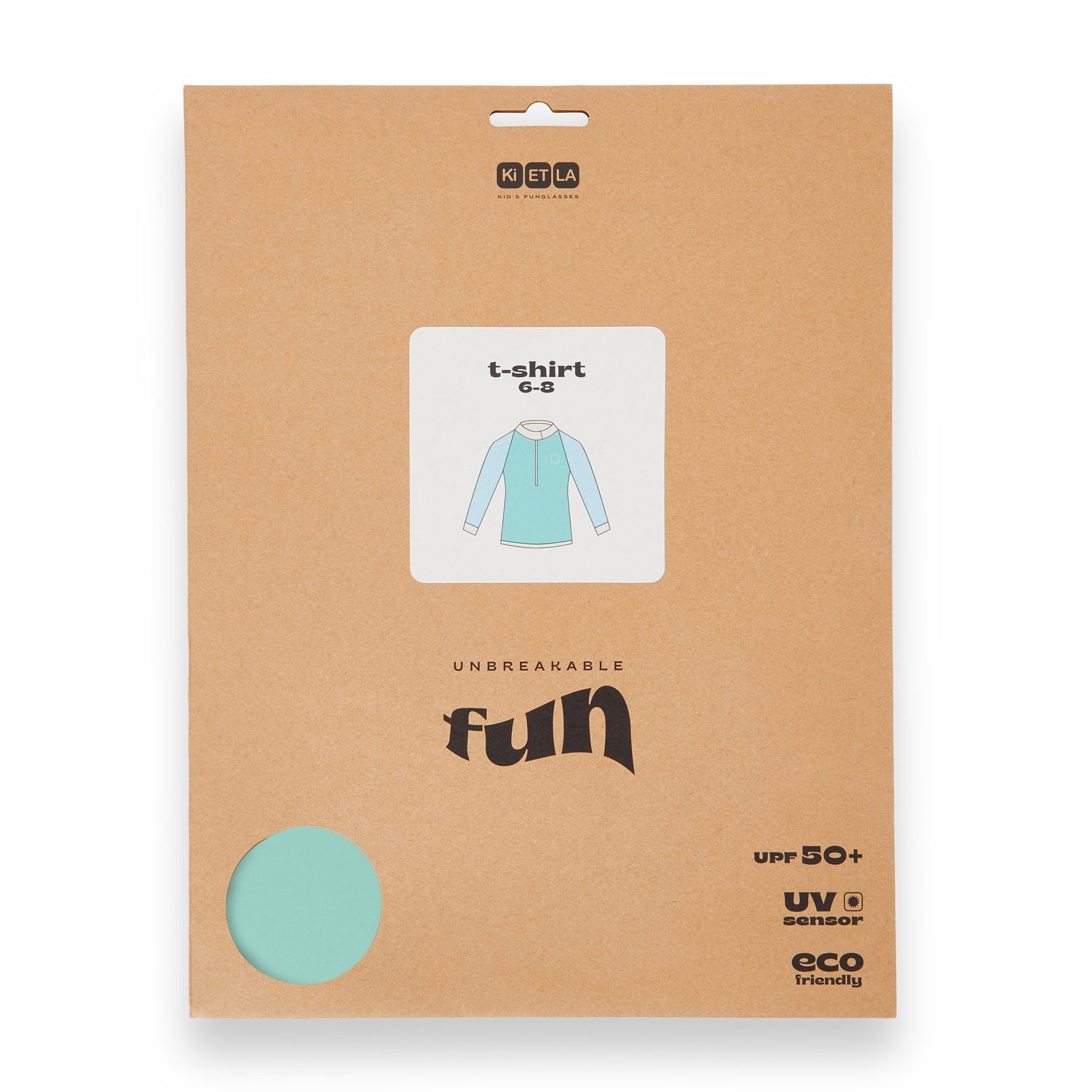 The packaging of the entire swim and poncho range is inspired by the style of Ki ET LA glasses: natural kraft paper with colorful accents. Models, colors, and age ranges are quickly recognizable. The round opening in the lower left corner allows you to feel the fabric and see the color.