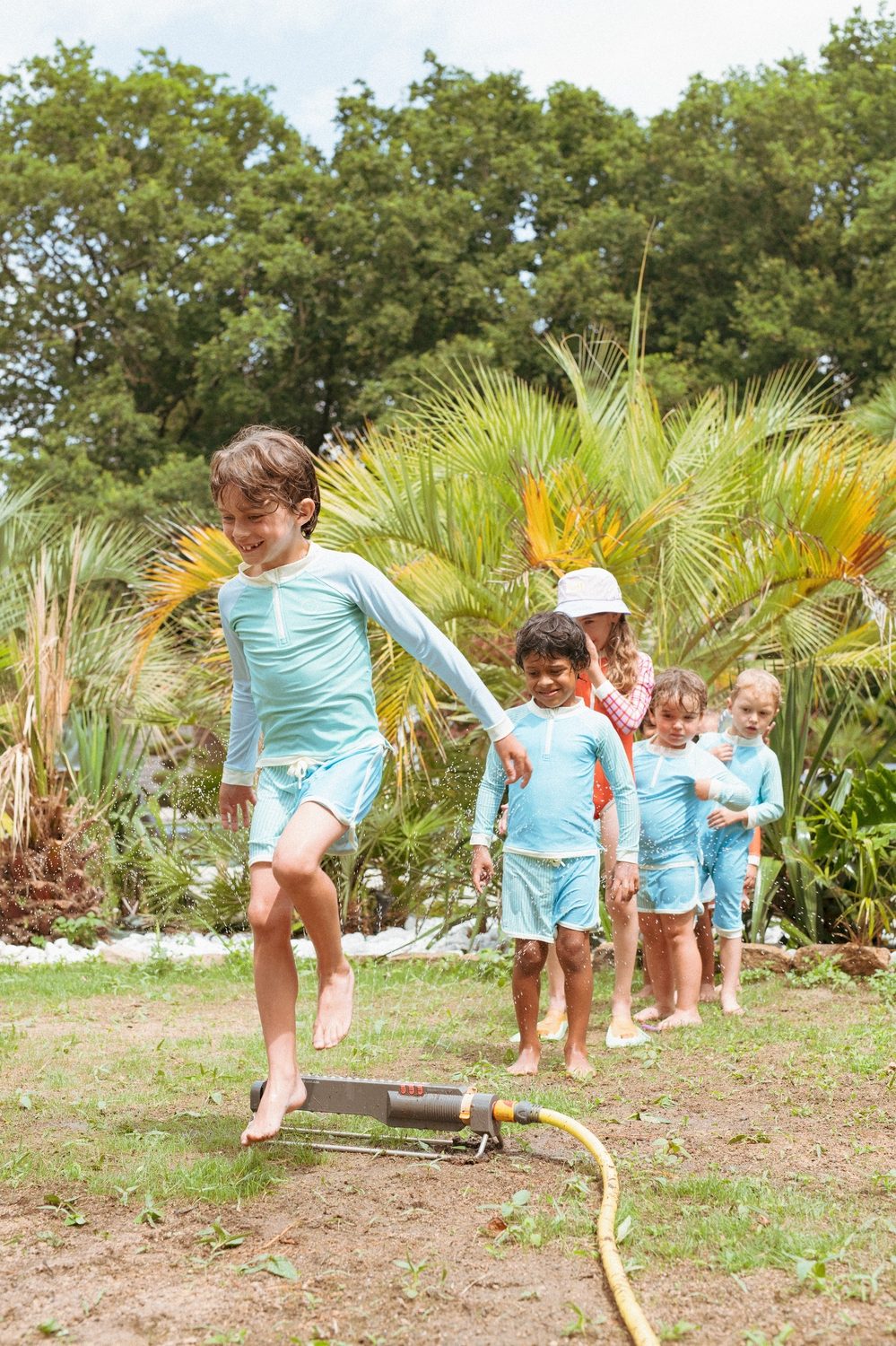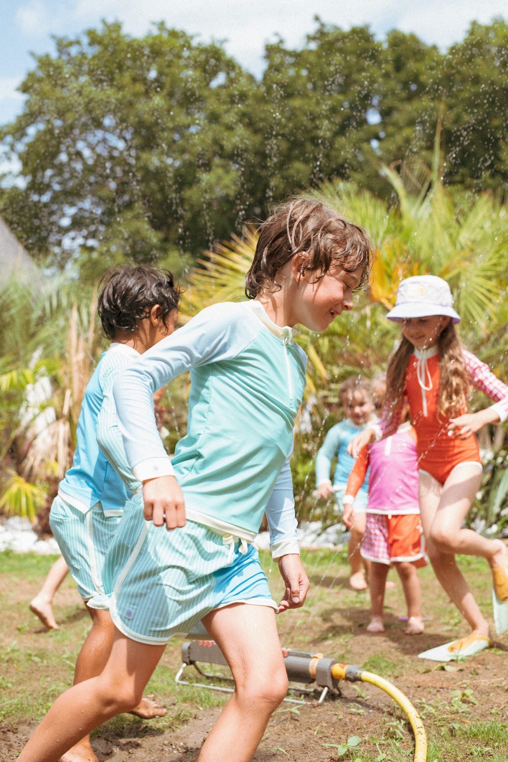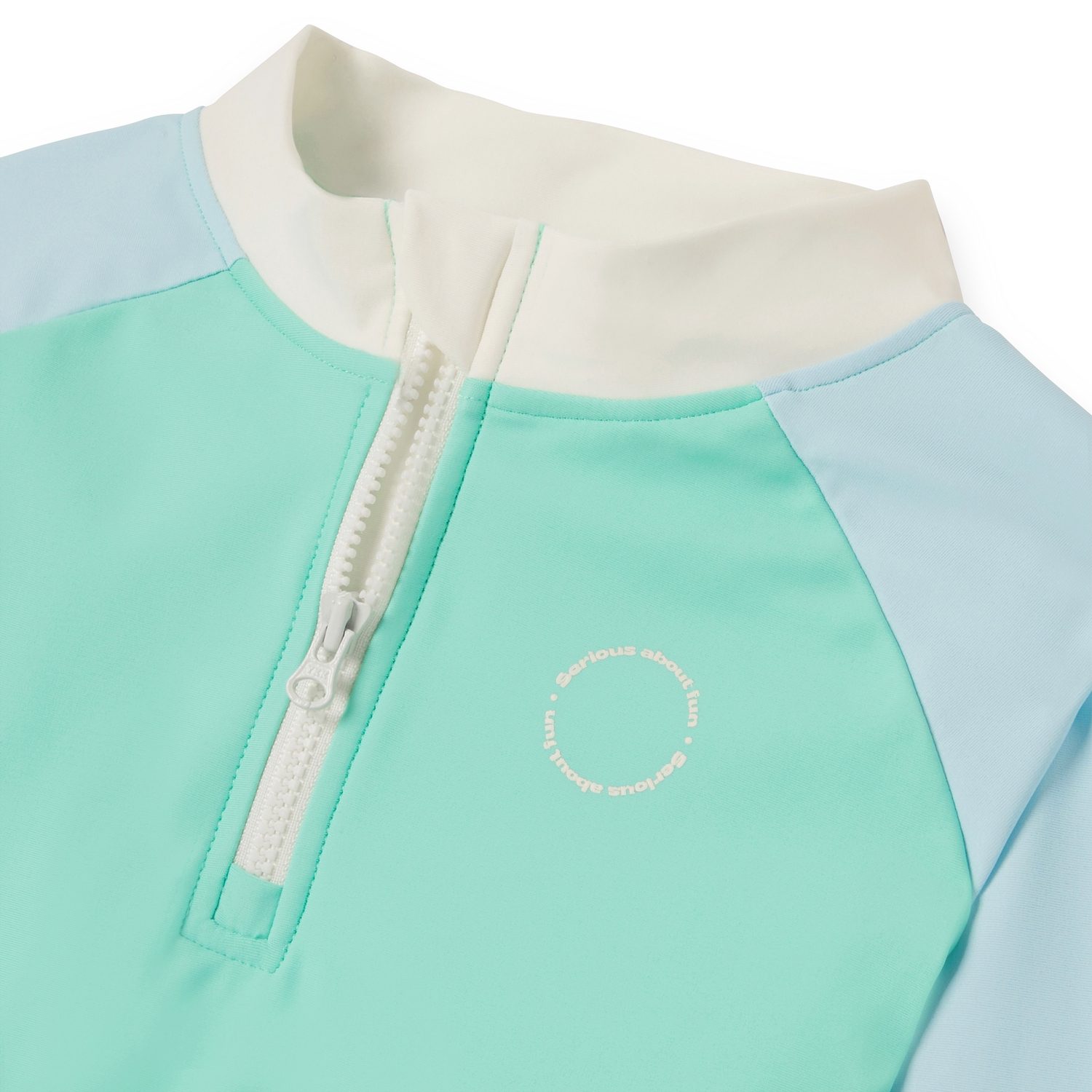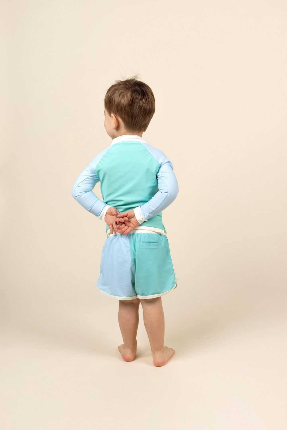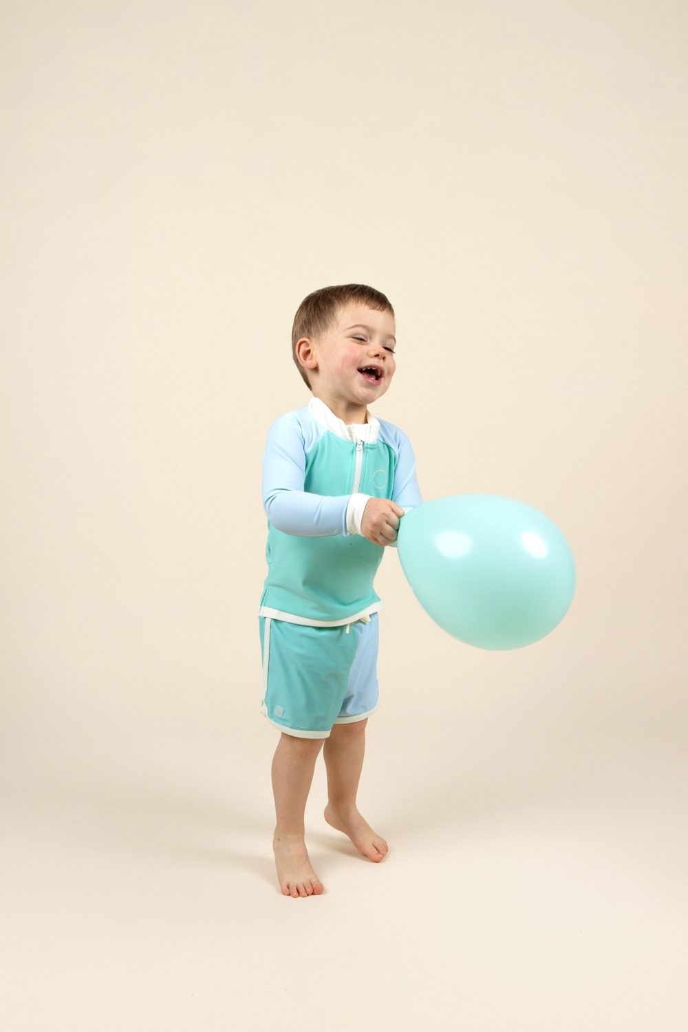 The long-sleeved UPF 50+ fabric offers complete protection from UVA and UVB rays and helps keep children’s delicate skin safe – naturally, without additional treatment.