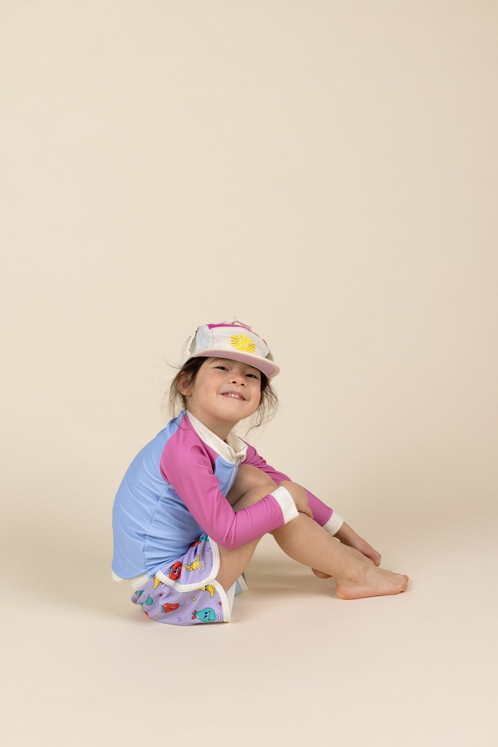 The shorts feature a UV sensor that changes color when the sun strengthens (the more purple the tone, the more additional protection is needed) – a simple way to teach children to care for themselves in the sun.