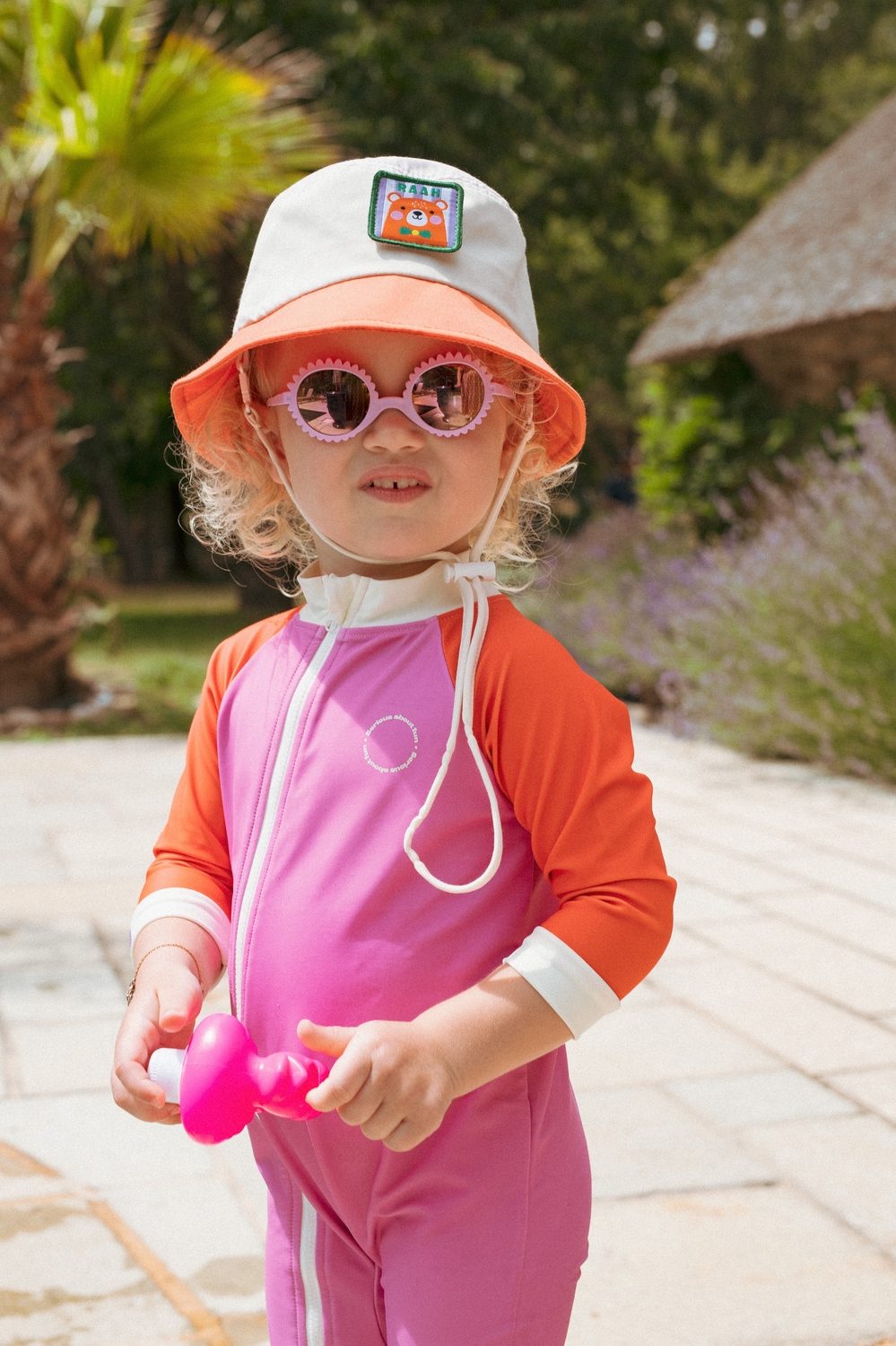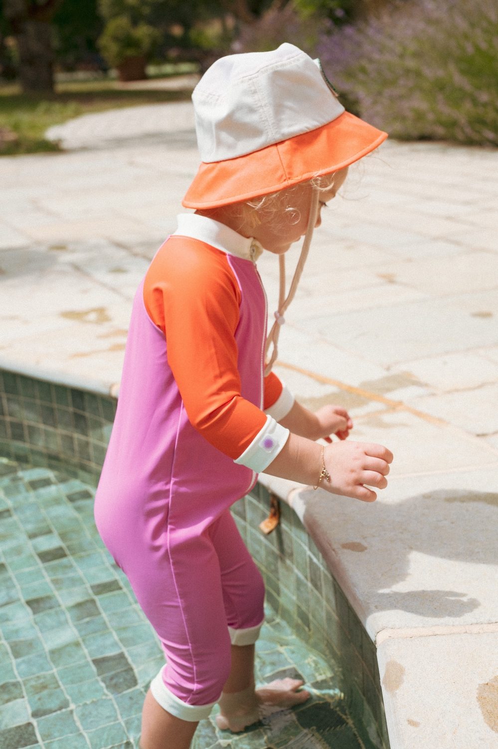 The swim costume features a UV sensor that changes color as the sun’s strength increases – the more purple the tone, the more additional protection is needed. A great way to teach sun safety from an early age.