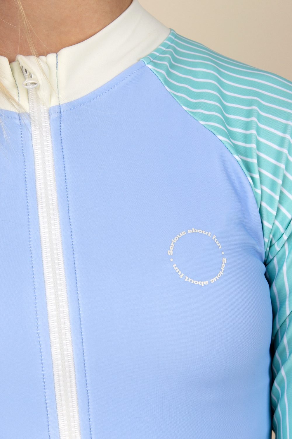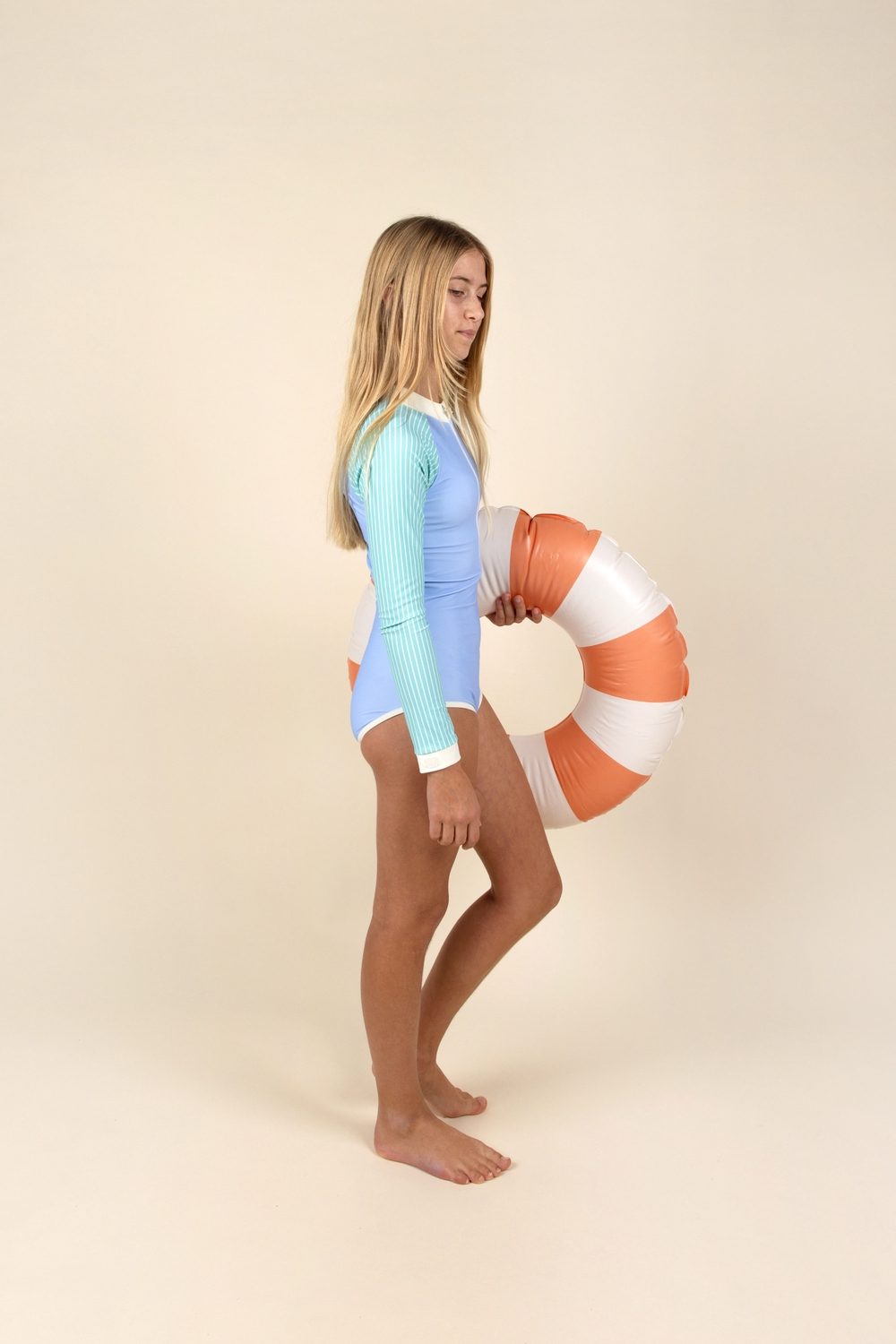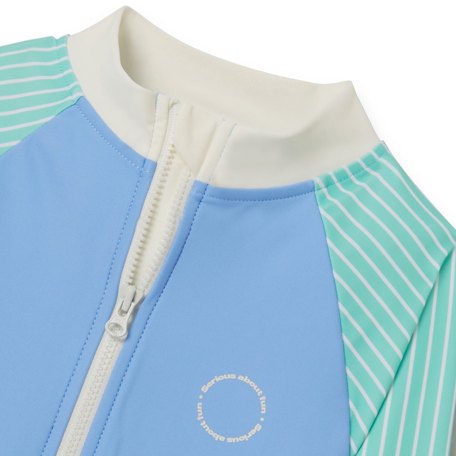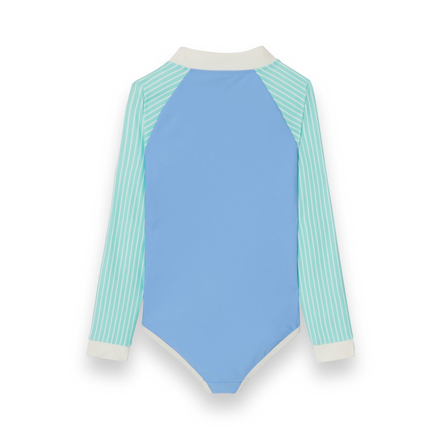 The long-sleeved UPF 50+ fabric provides full protection against UVA and UVB rays and helps keep children’s delicate skin safe — naturally, without additional treatment.
