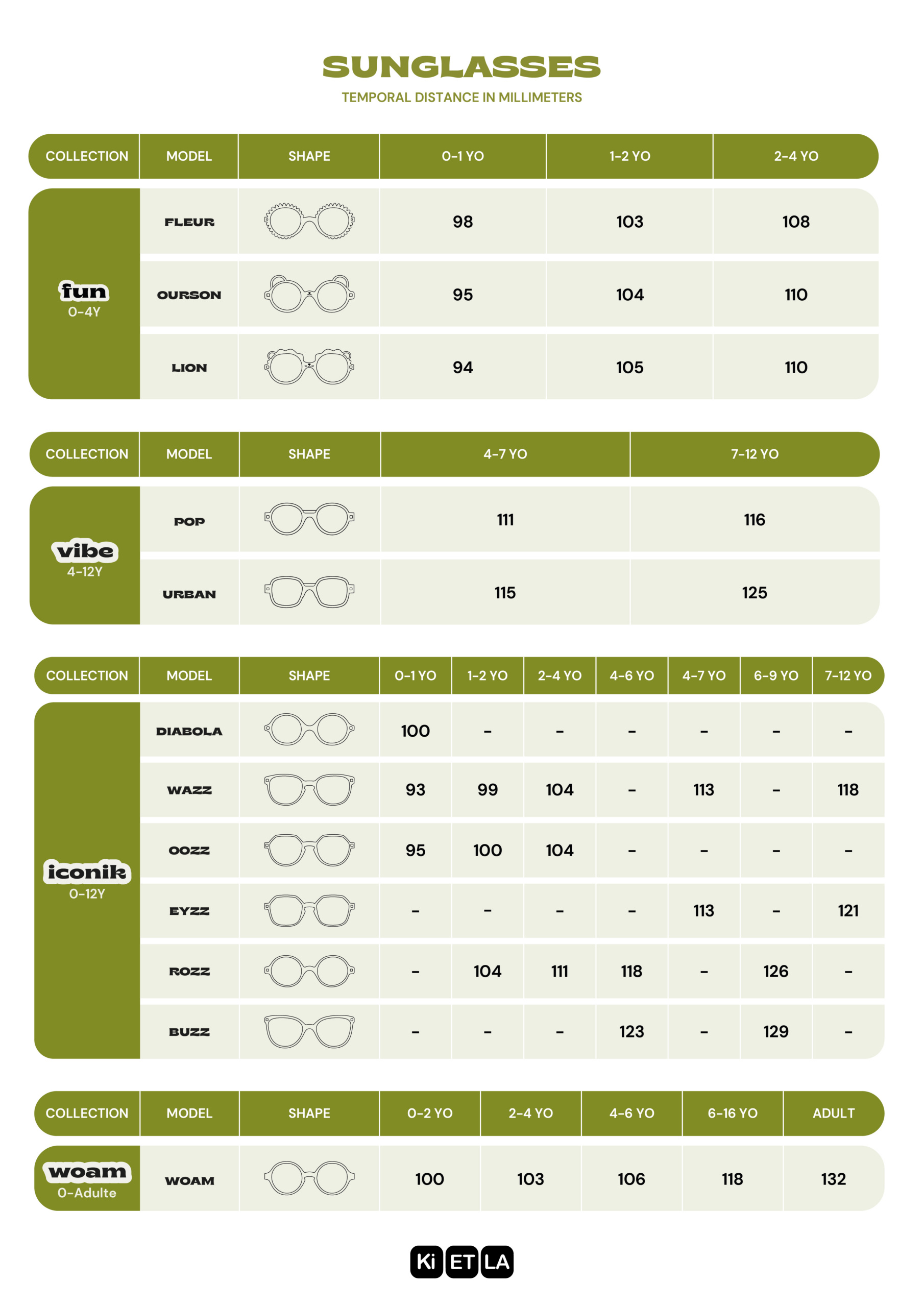 Kietla 0-4 years glasses are characterized by their one-piece, very flexible, screwless frame that is unbreakable when handled. Despite being made as safe as possible for children, these are not toys. The lenses can get scratched if rubbed against rocks, chewed, etc.