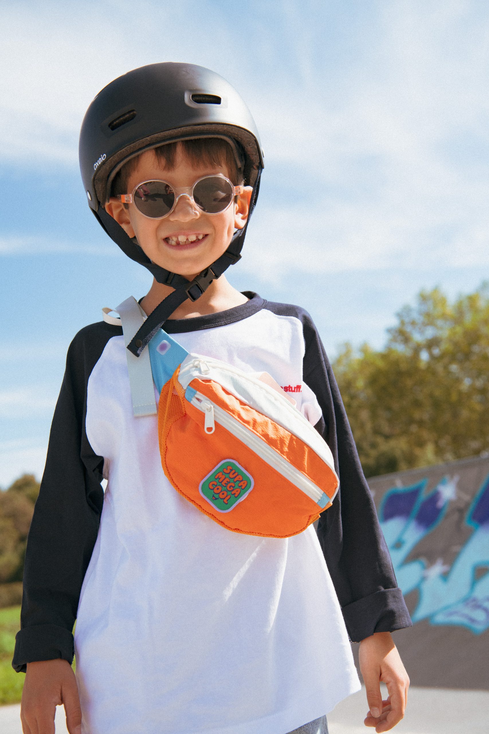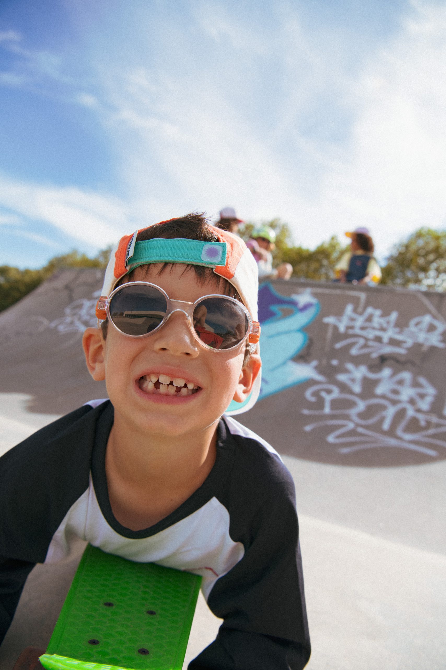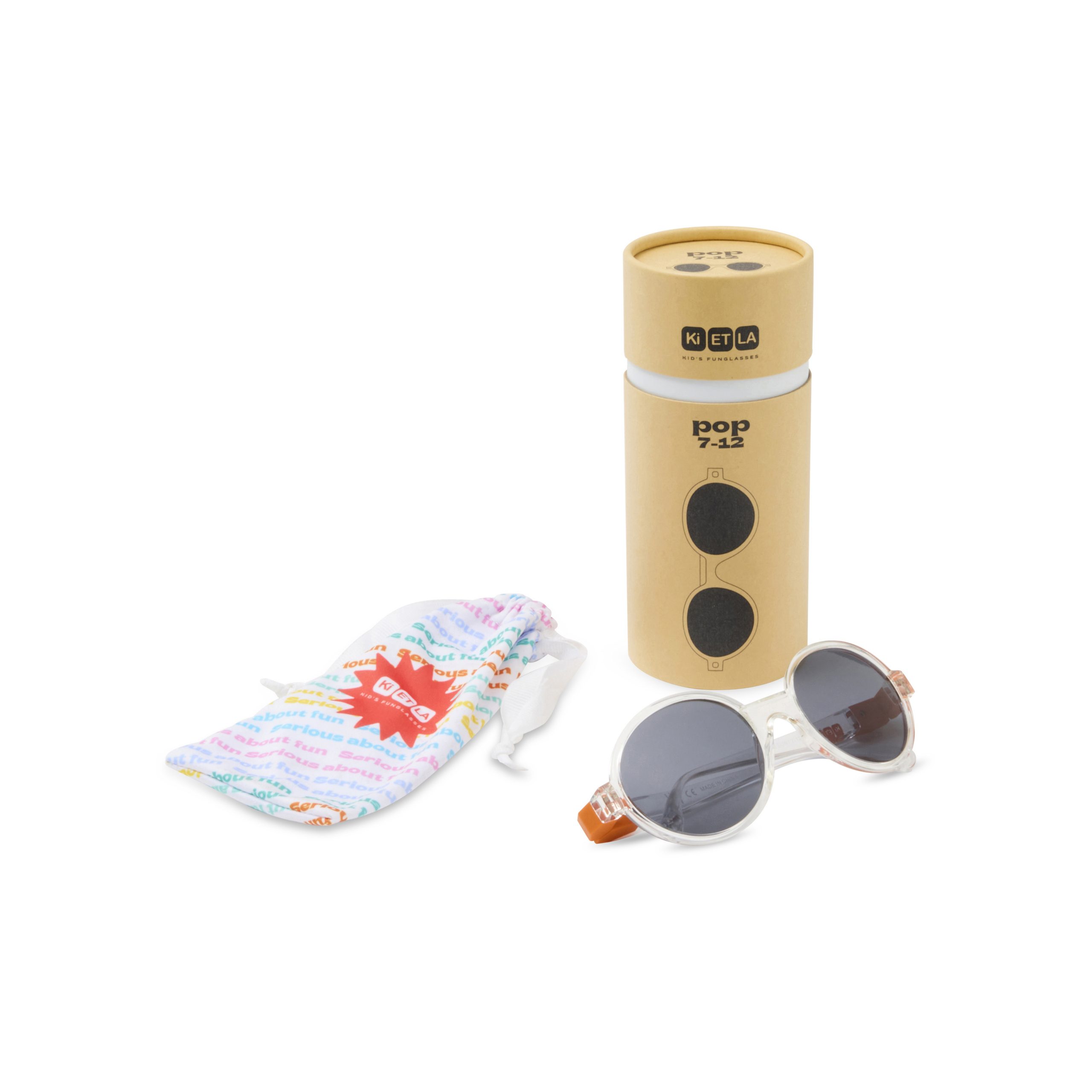 The Pop model of the VIBE collection features a round pantos shape and a durable frame with temples that open to 180°. The semi-thick, slightly translucent temples and uniform matte color give the sunglasses character and a sporty style. Available in two sizes (4–7 and 7–12) to provide great comfort for children of all ages.