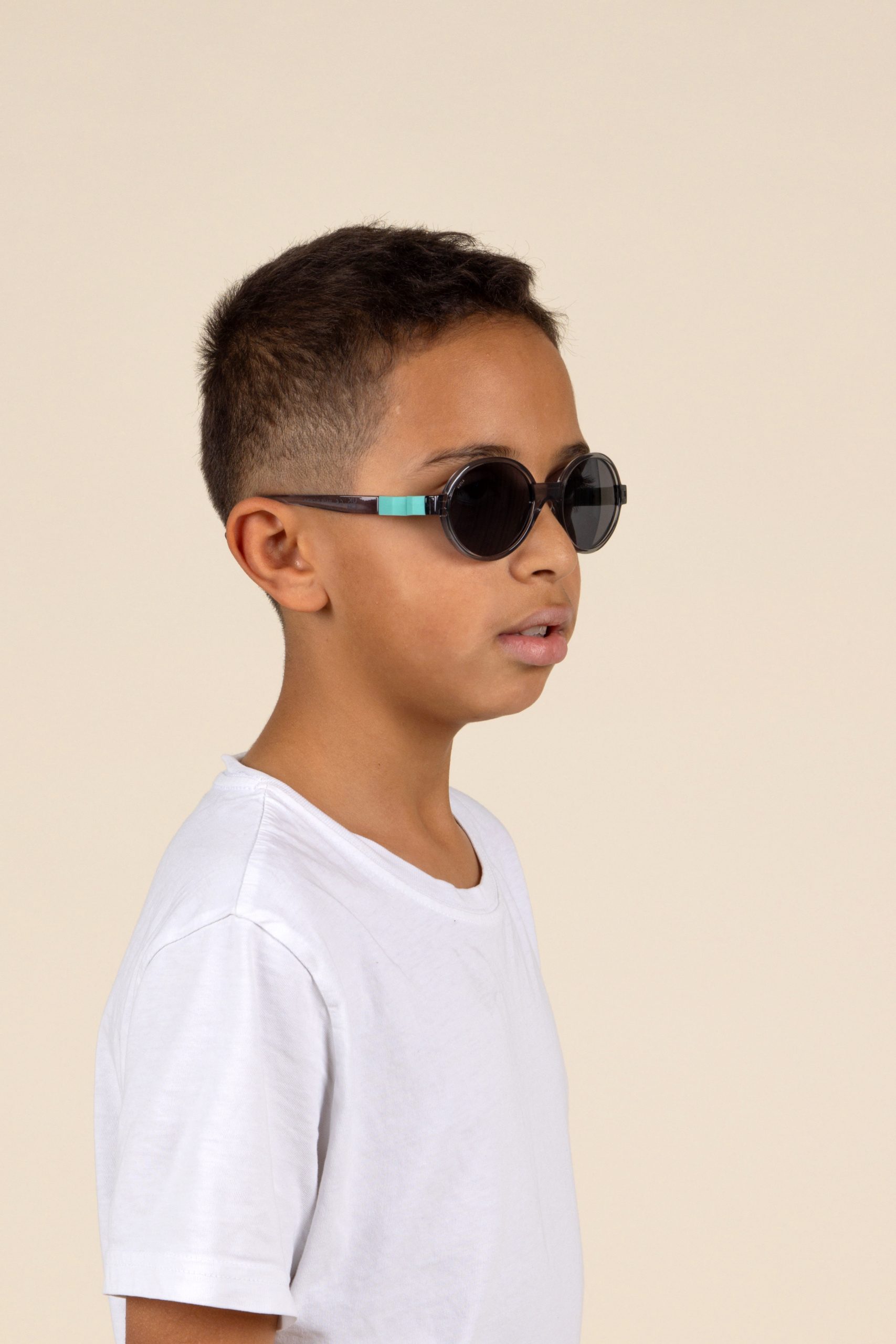 The VIBE collection’s Pop model features a round pantos shape and a durable frame with 180° opening temples. The semi-thick, slightly translucent temples and consistent matte finish give these sunglasses personality and a sporty style. Available in two sizes (4–7 and 7–12) to ensure a good fit for children of all ages.