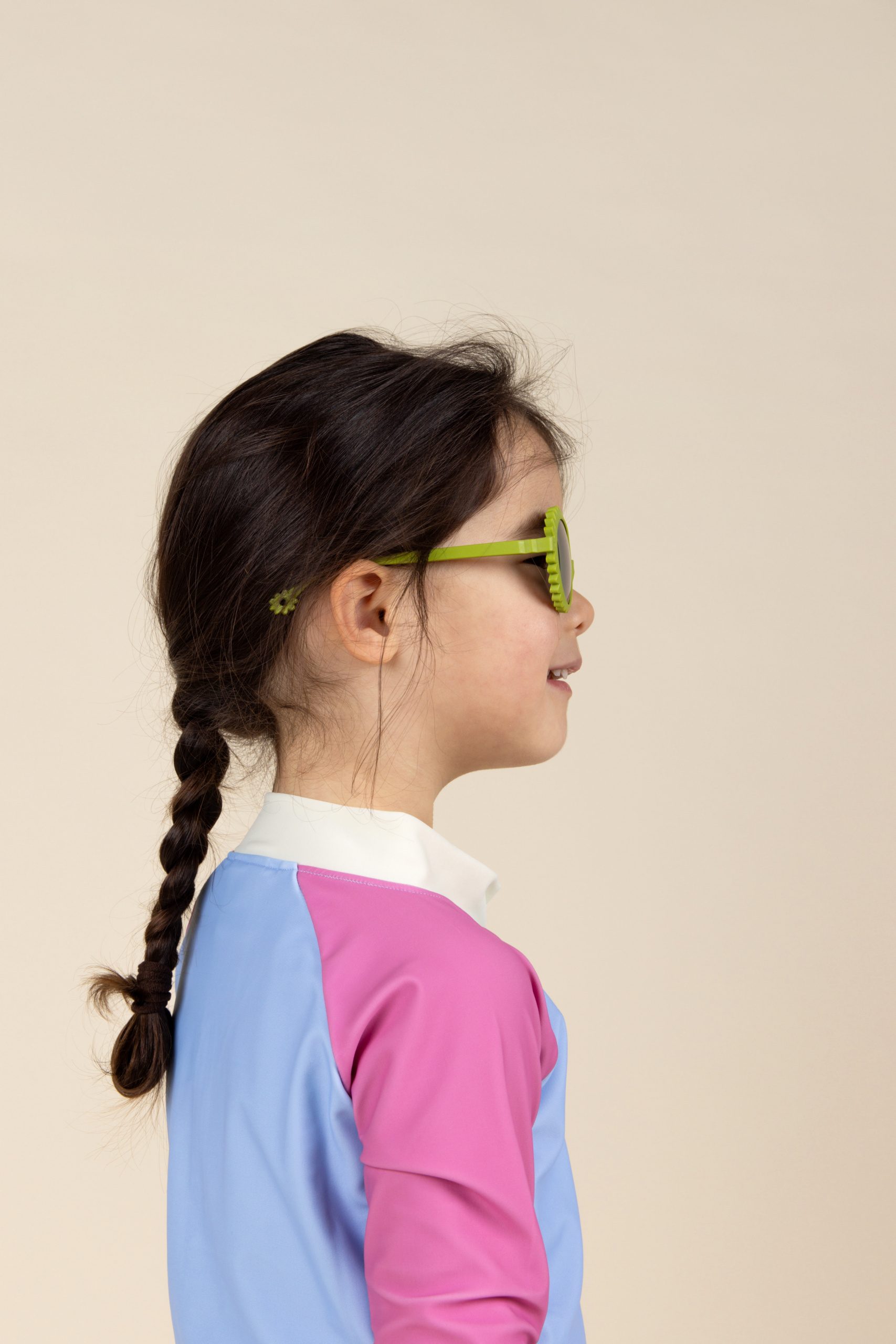 Ultra-lightweight Fleur sunglasses have a round pantos-shape, frames with flower petals, and are equipped with mirror lenses (made of polycarbonate). The glasses are 100% made in France and suitable for children aged 0-4 years (0-1, 1-2, 2-4 years). Available in various colors.