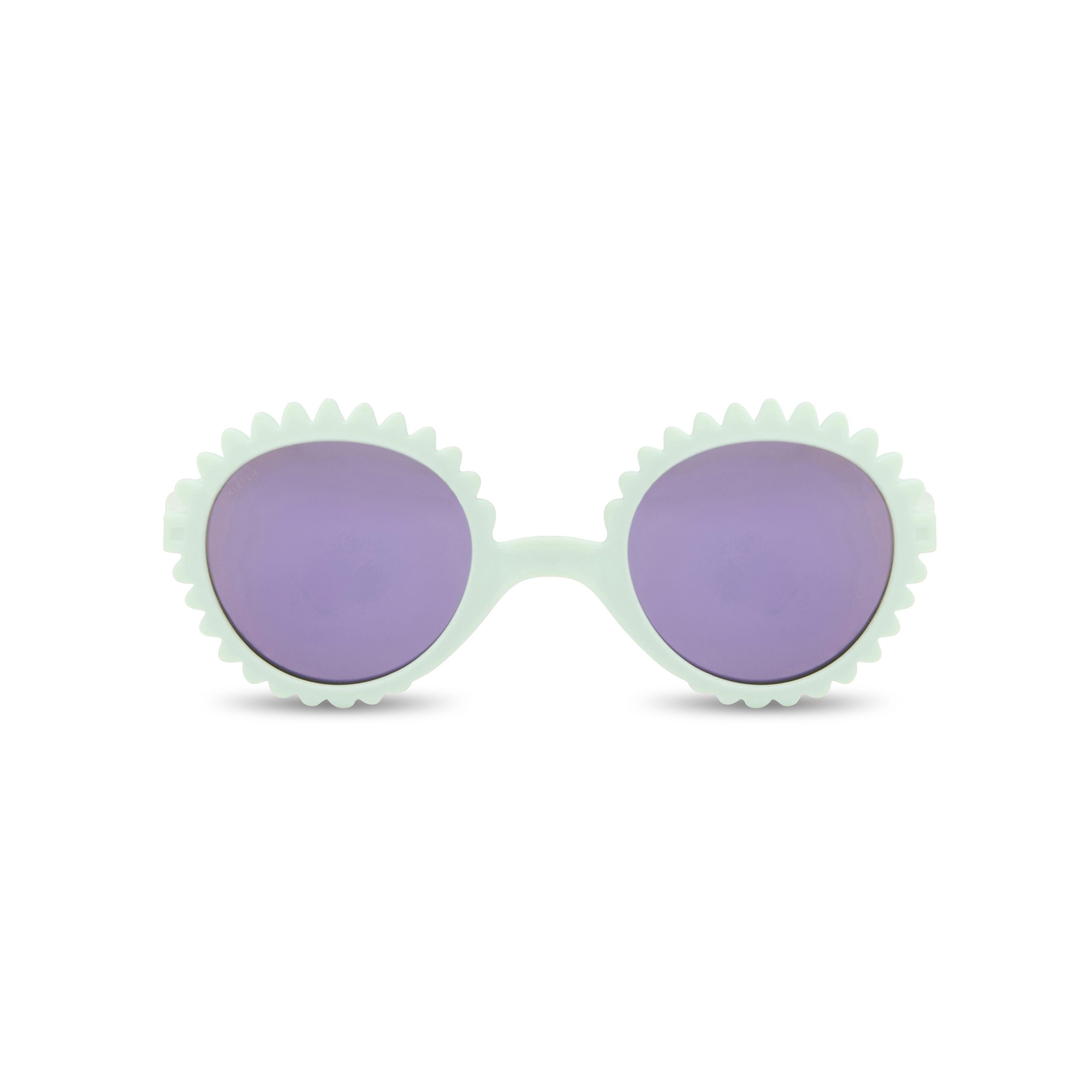 Ultra-lightweight Fleur sunglasses have a round pantos-shape, frames with flower petals, and are equipped with mirror lenses (made of polycarbonate). The glasses are 100% made in France and suitable for children aged 0-4 years (0-1, 1-2, 2-4 years). Available in various colors.