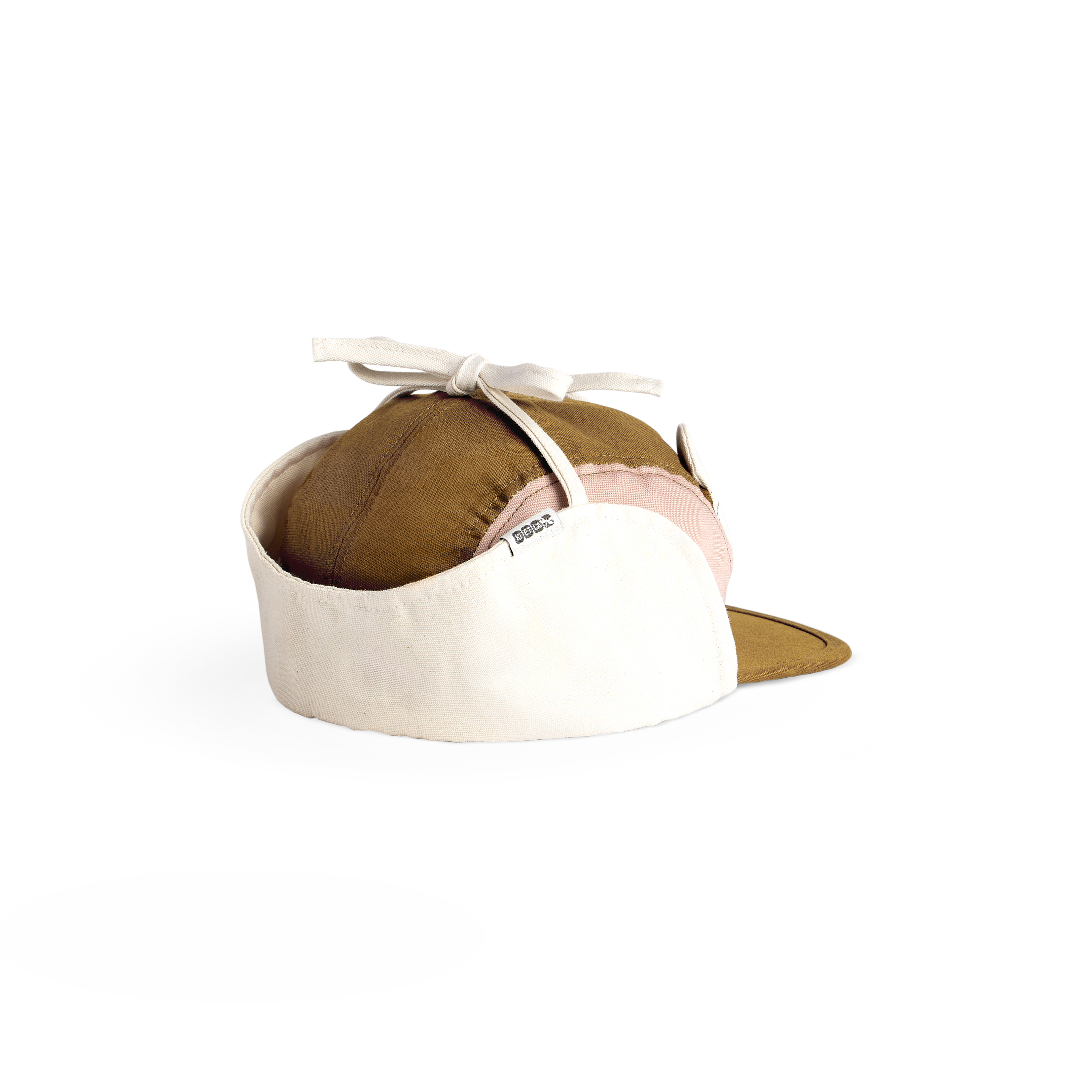 The Camper Cap is a must-have for stylish and adventurous kids. Featuring a vintage-style round brim and a wide edge that can be lowered to protect the neck. Made in Italy from GOTS-certified organic cotton, it provides optimal sun protection for outdoor activities. Additionally, it includes a unique system inside for hanging glasses.