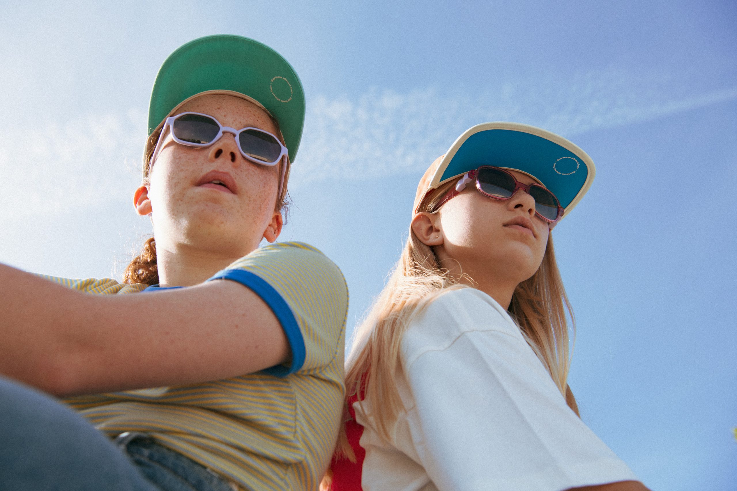 Should children and babies wear sunglasses? The eyes of babies and children need to be specially protected from harmful sun radiation on hot sunny summer days because their eyes’ protective ability is low: a child’s pupil is wide, the lens crystal clear, and they look upwards more than adults. Children are at greater risk of developing eye damage from excessive sun exposure.