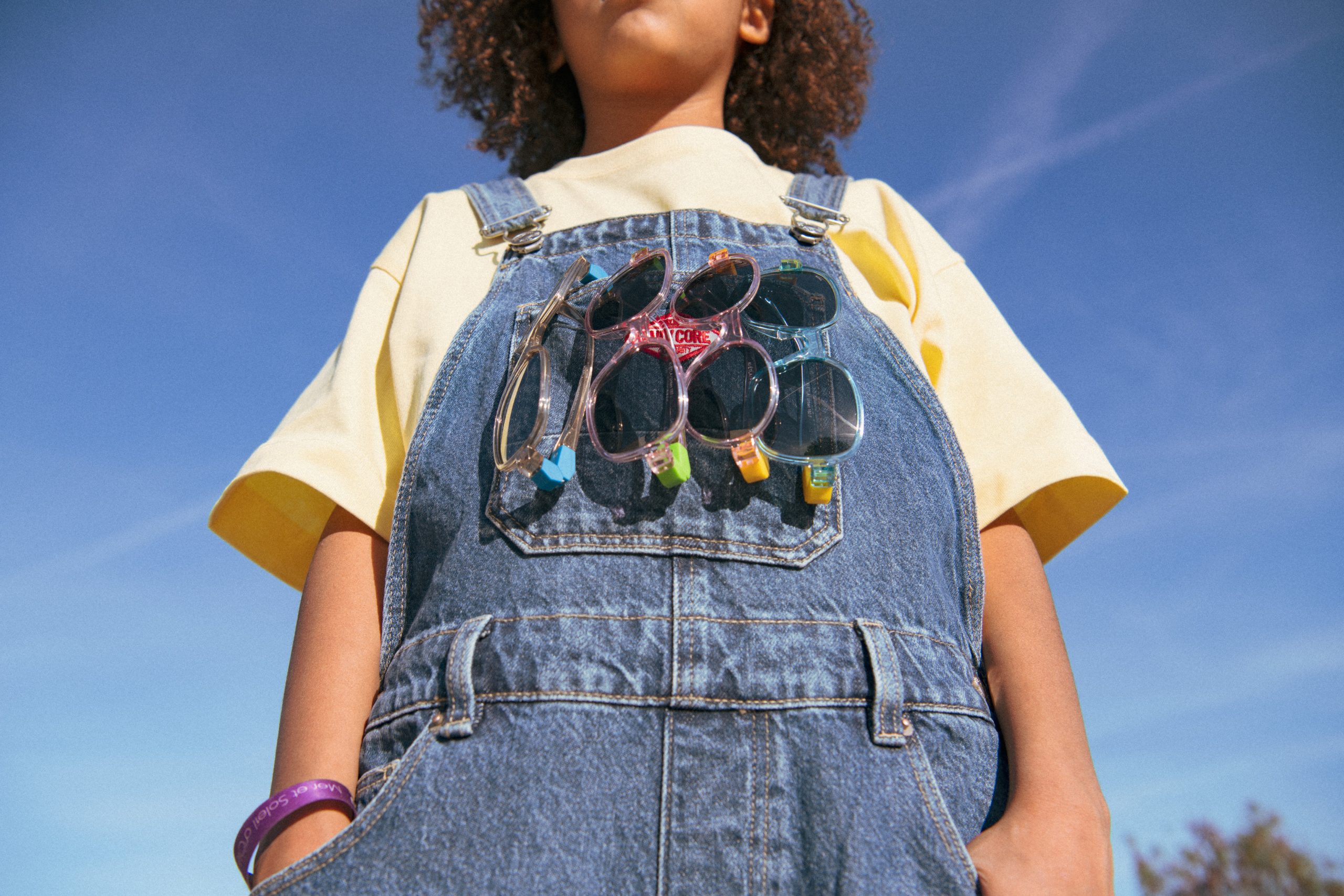 The semi-thick temples of the sunglasses are made of translucent material and feature a 180° flexible hinge, allowing them to open wide without damaging the frame. An even matte tone adds character, while the translucent tone keeps the design light. The model is available in two sizes: 4–7 and 7–12 years, accommodating different face shapes.