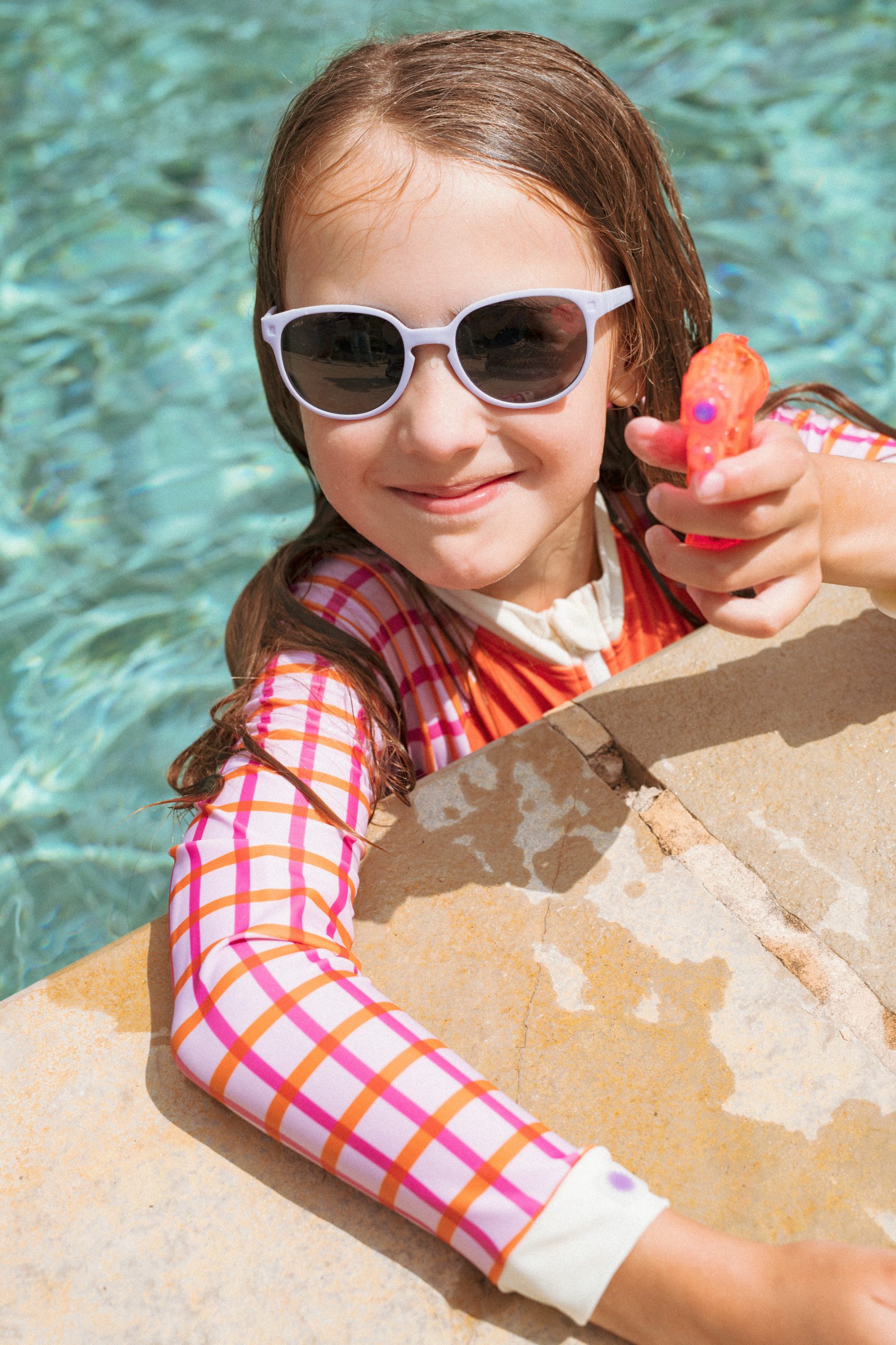 KIETLA Wazz sunglasses have a classic adult Keyhole design, making them look more like mom and dad. The glasses are screw-free, so there’s no risk of small parts getting into the child’s fingers and then into their mouth. The glasses feature a very flexible, durable one-piece frame. The lenses have a high category 3 UV protection and are made from durable polycarbonate.