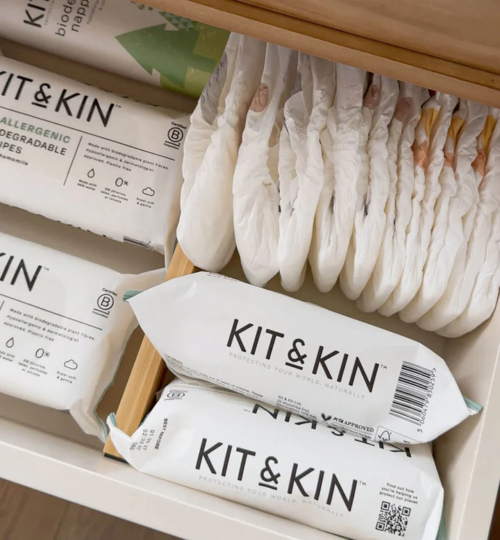 The wet wipes are 100% biodegradable and free from plastic. The wipes are very soft and do not contain chemicals. The ingredients of Kit&Kin wet wipes (excluding the wipe itself) are made from so-called edible ingredients found in food, fruits, and the human body. The wipe itself is made from 100% plant-based ingredients, and the packaging contains 50% recycled materials.