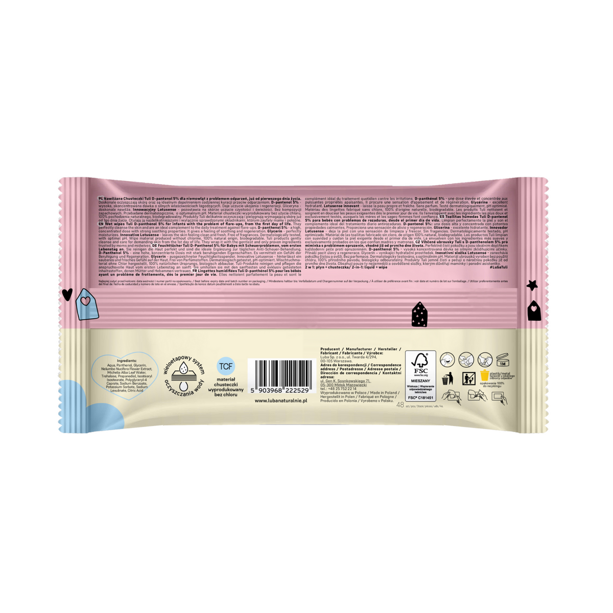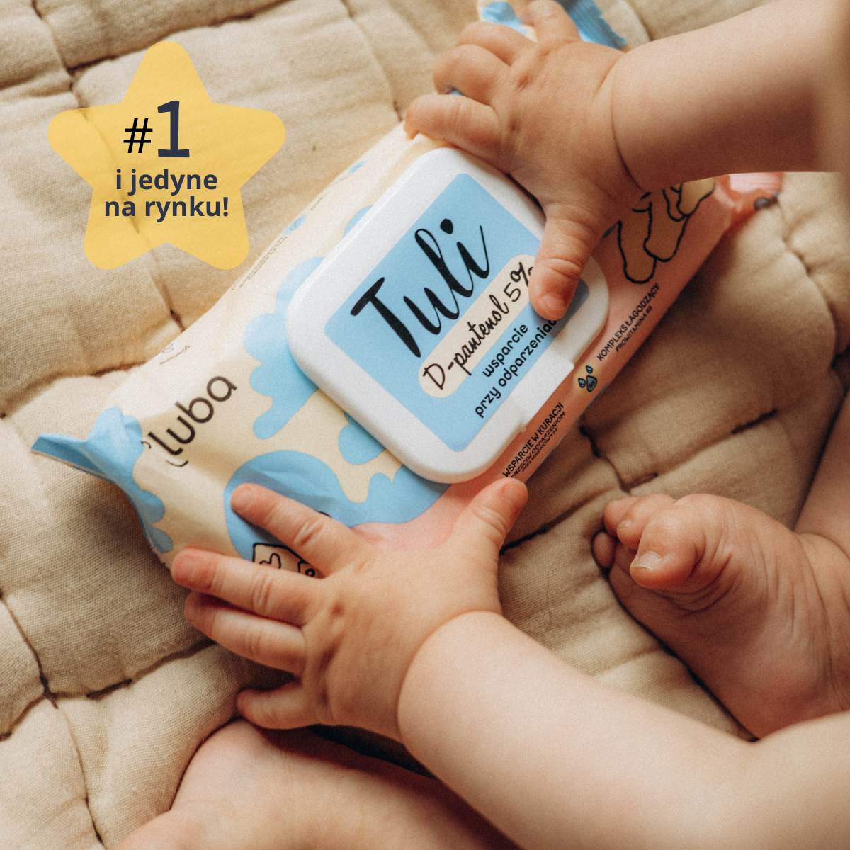 Tuli D-Panthenol are unique wipes containing a high concentration of 5% D-panthenol – a vitamin B5 derivative known for its moisturizing, restorative, and soothing properties. They are designed for the care of very delicate and problematic skin, providing relief from diaper rash, redness, and irritation.
