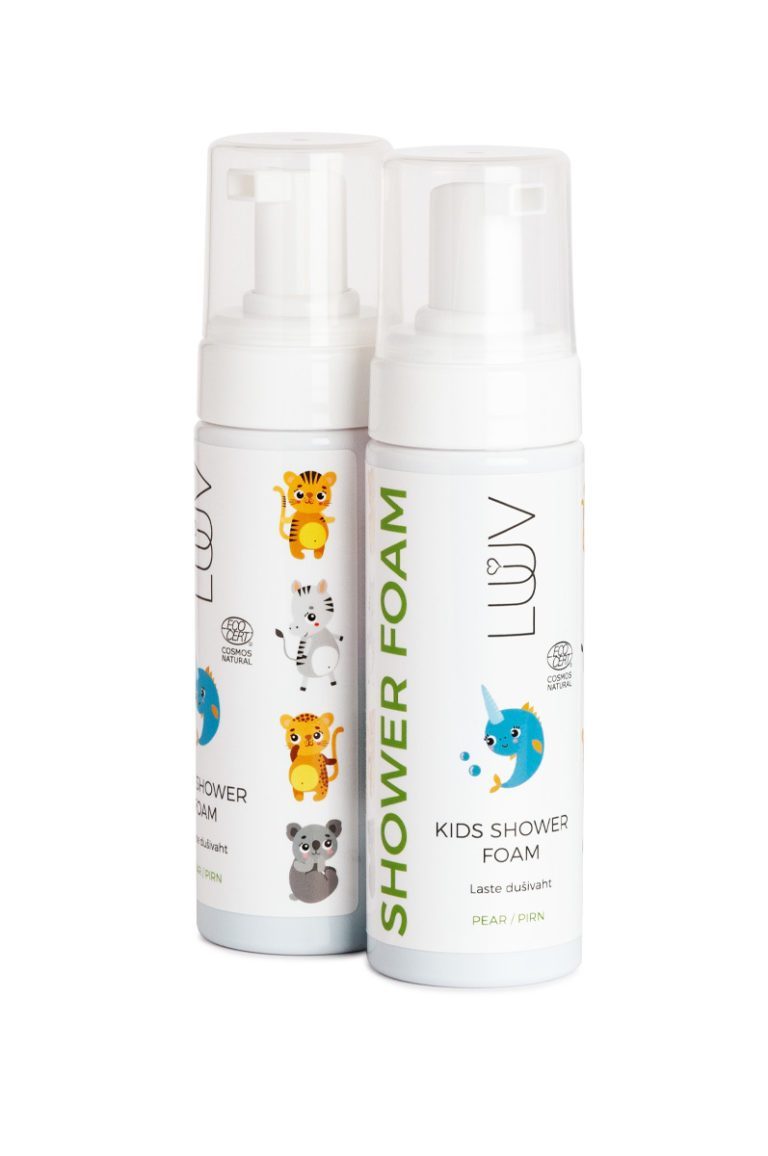 LUUV children’s shower foam is certified with the globally recognized ECOCERT / COSMOS eco-certificate. The shower foam makes washing playful and fun. The rich, soft foam is made from carefully selected plant-based cleansers that do not irritate or dry out the child’s delicate skin. The gentle pear aroma is of natural origin and does not contain allergens. The beautiful pinkish purple shade comes from potato extract. Eco-certified, natural and vegan product.